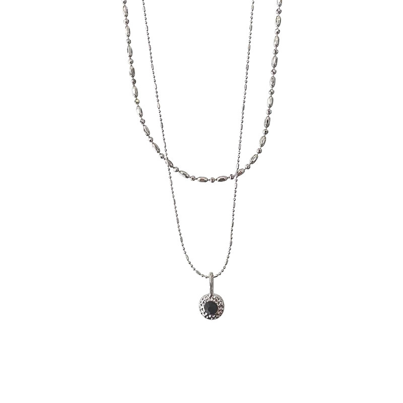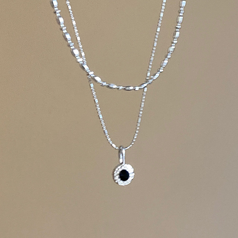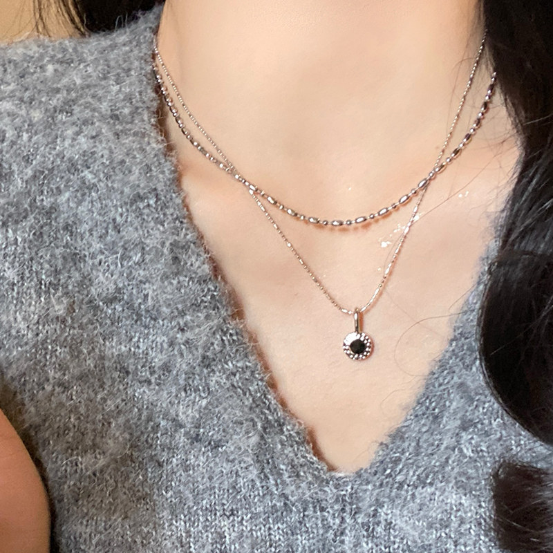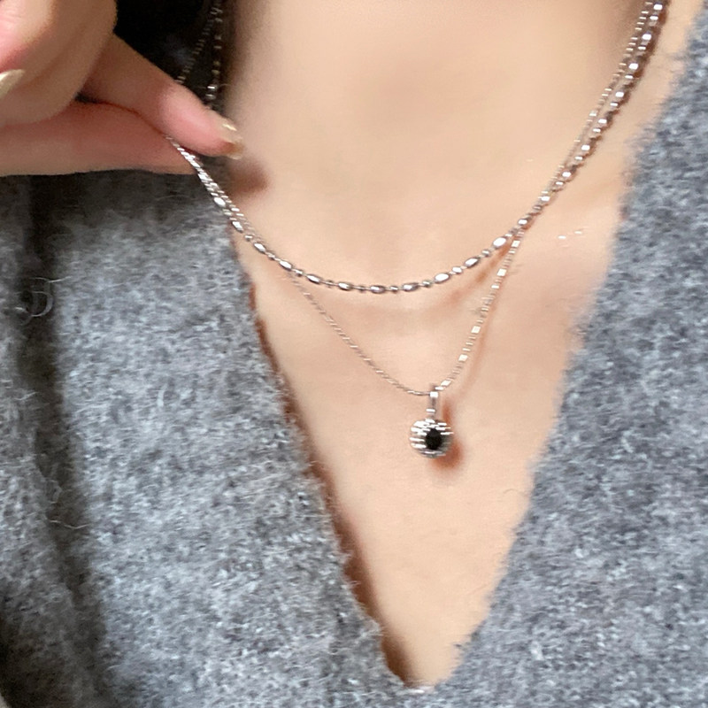 高级感黑色吊坠项链女生新款毛衣链米粒项链轻奢小众锁骨链首饰品