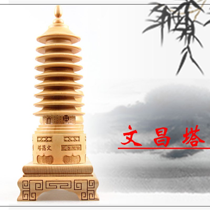 九层桃木文昌塔笔筒雕刻工艺摆件文昌笔筒塔套装送文昌笔