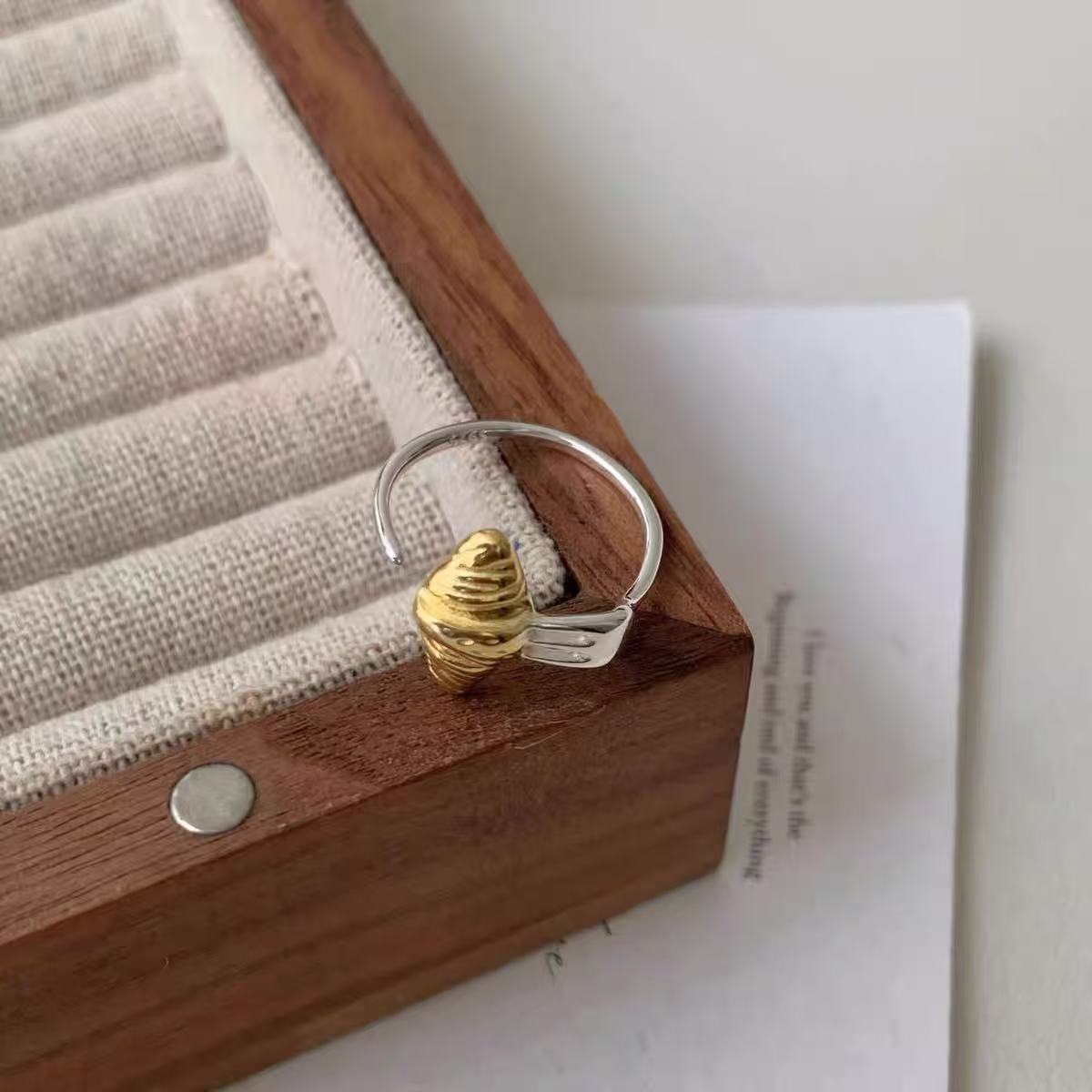 【两件包邮】独特性牛角包戒指女个性时尚创意网红S925镀银开口指