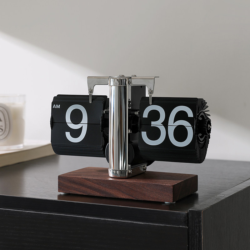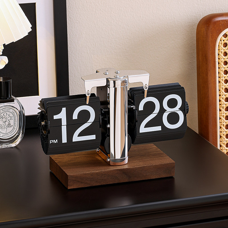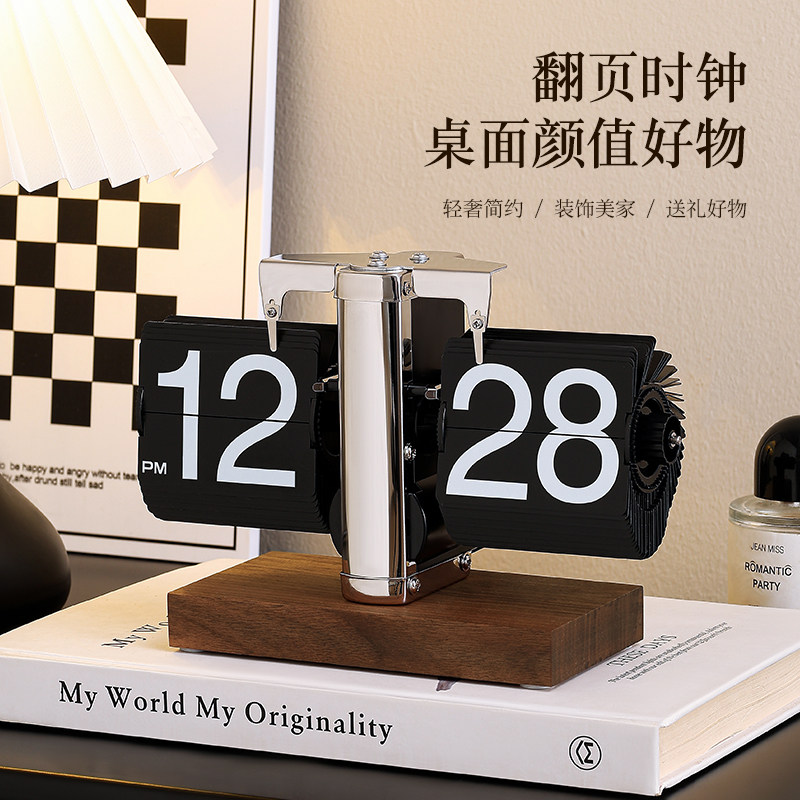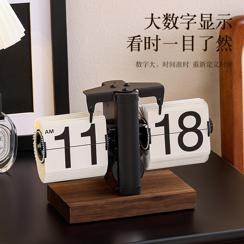 轻奢自动翻页时钟桌面摆件复古机械表摆台式数字钟表创意客厅装饰