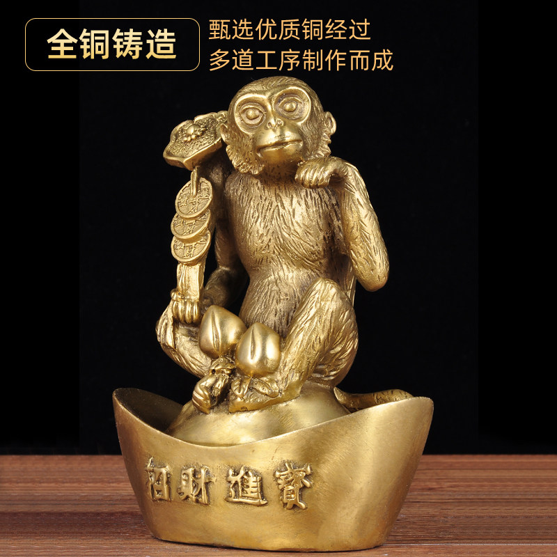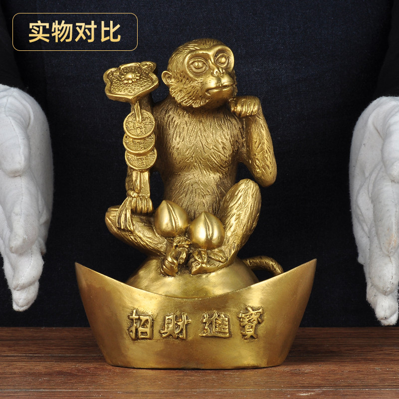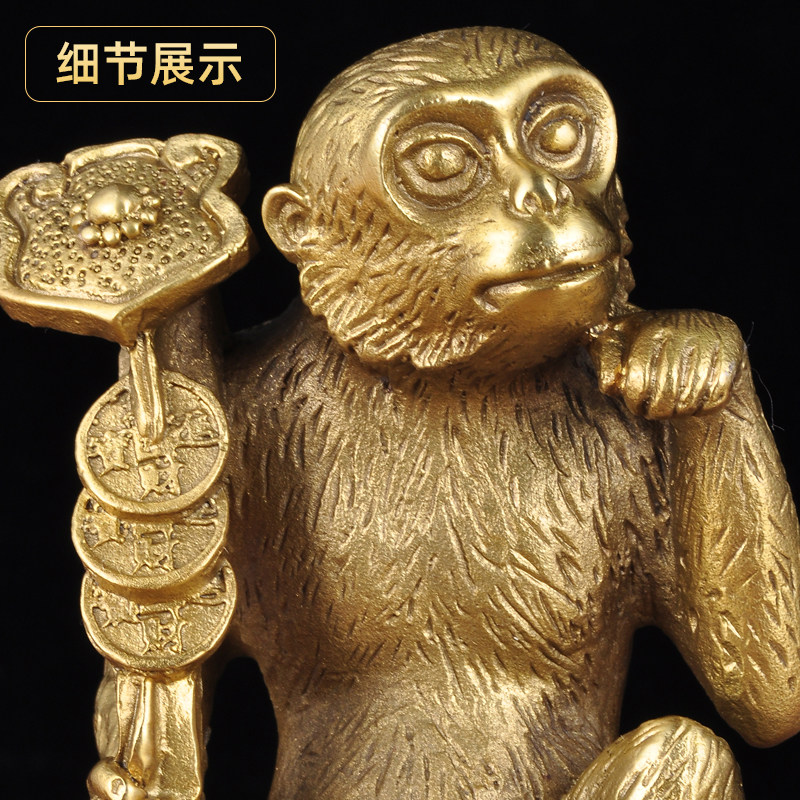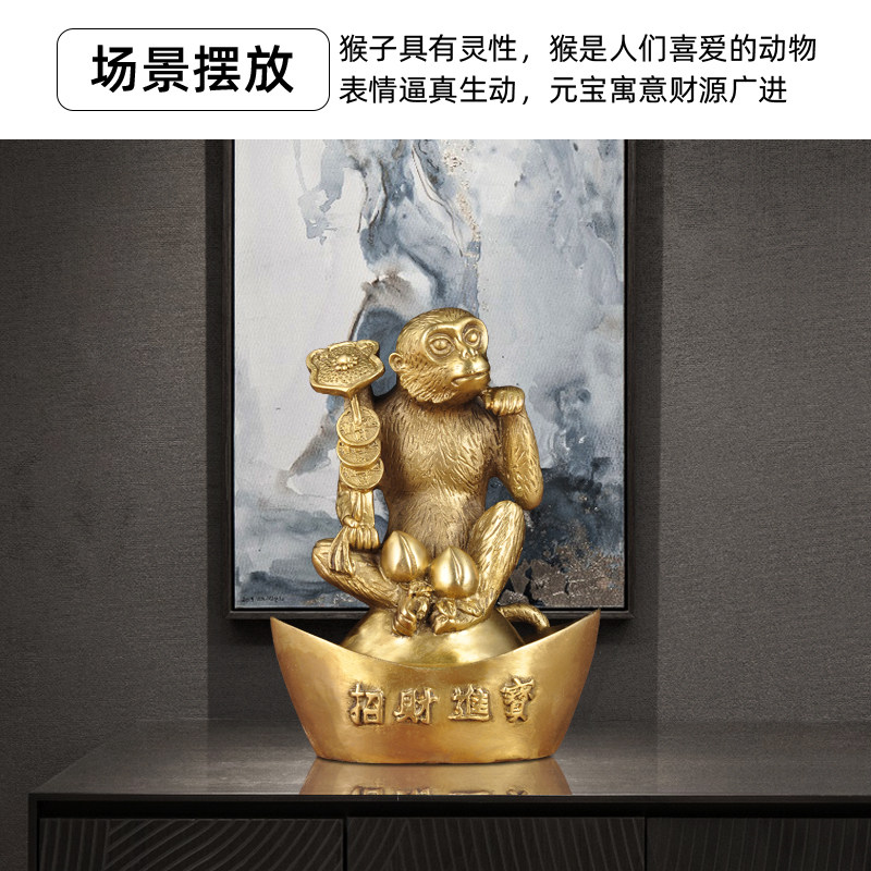 铜猴子元宝玉如意摆件招财风水工艺品家居客厅公司开业招财装饰品