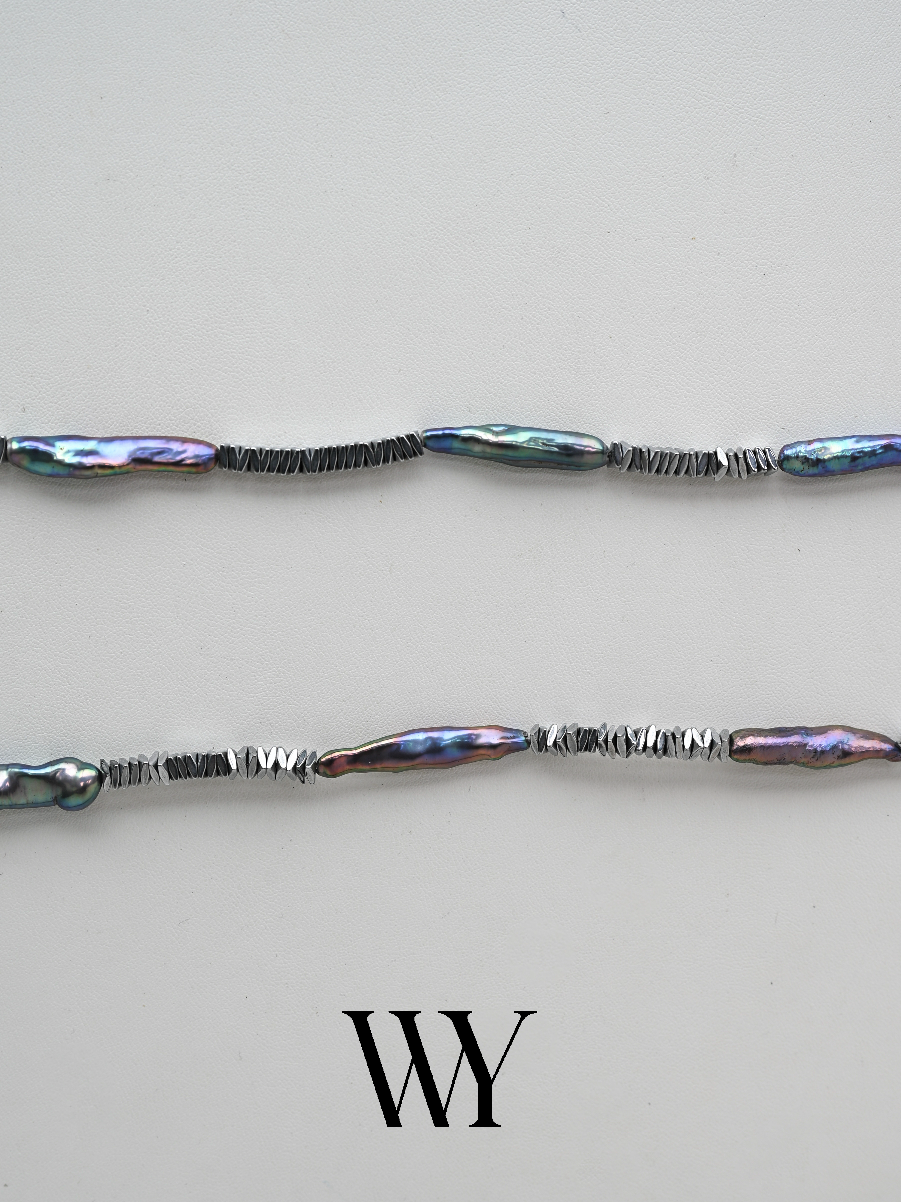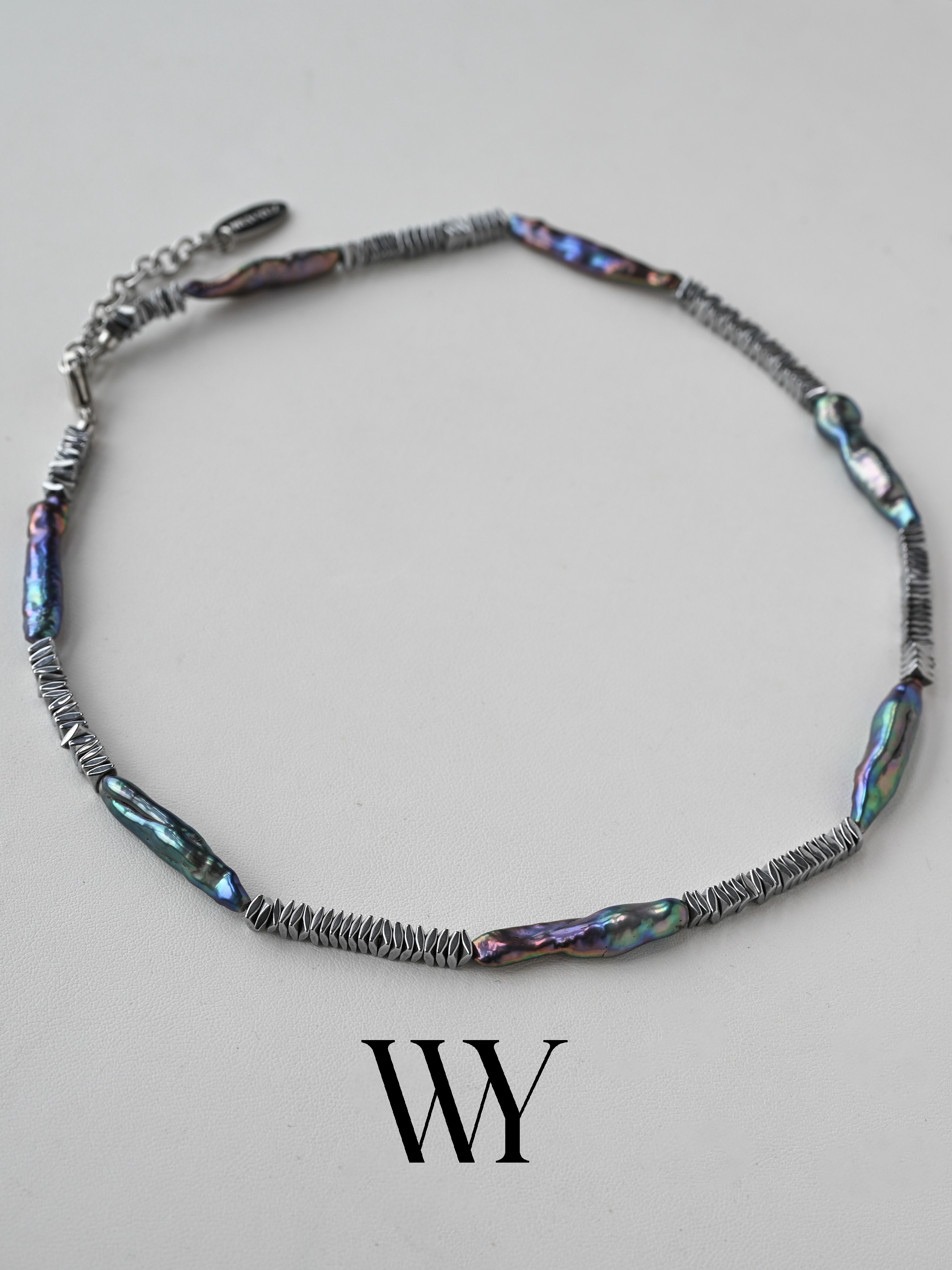 WY冬季新款原创设计淡水巴洛克珍珠拼黑胆石项链小众新年礼物礼盒