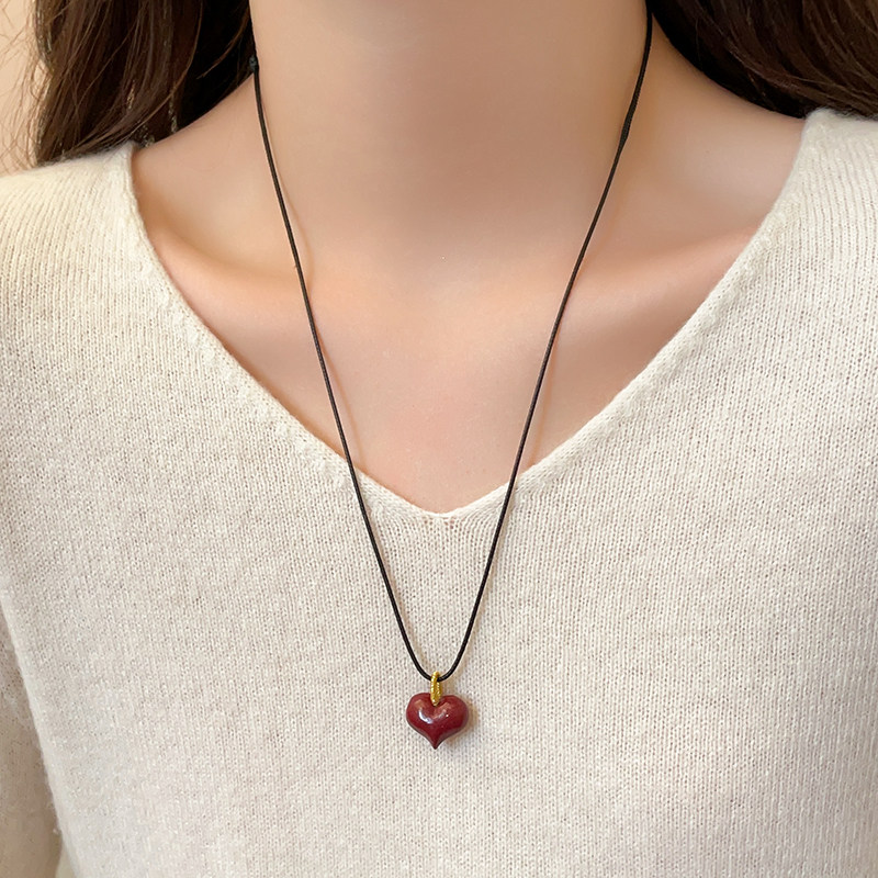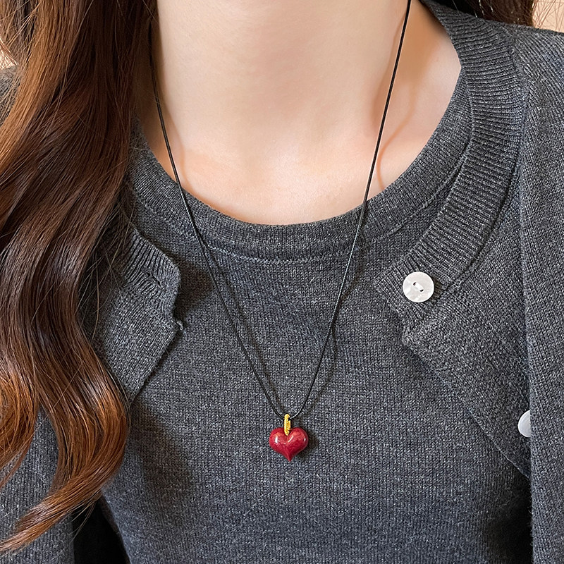 黑色立体爱心皮绳项链女2026新款长款毛衣链大气高档高级感配饰品