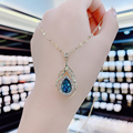 Young蓝色吊坠大裸石20克拉5A级坦桑石吊坠镶钻黄金分色彩色宝石