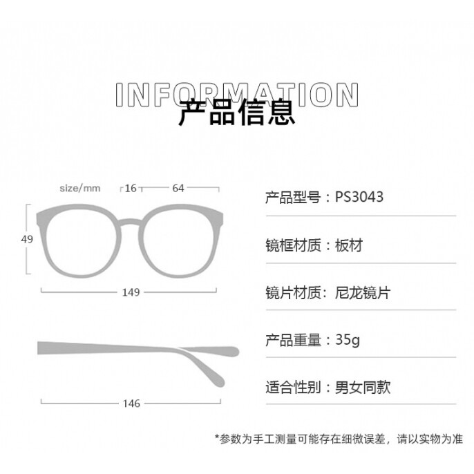 帕莎2024新品男女防紫外线墨镜可配度数时尚简约开车太阳镜PS3043