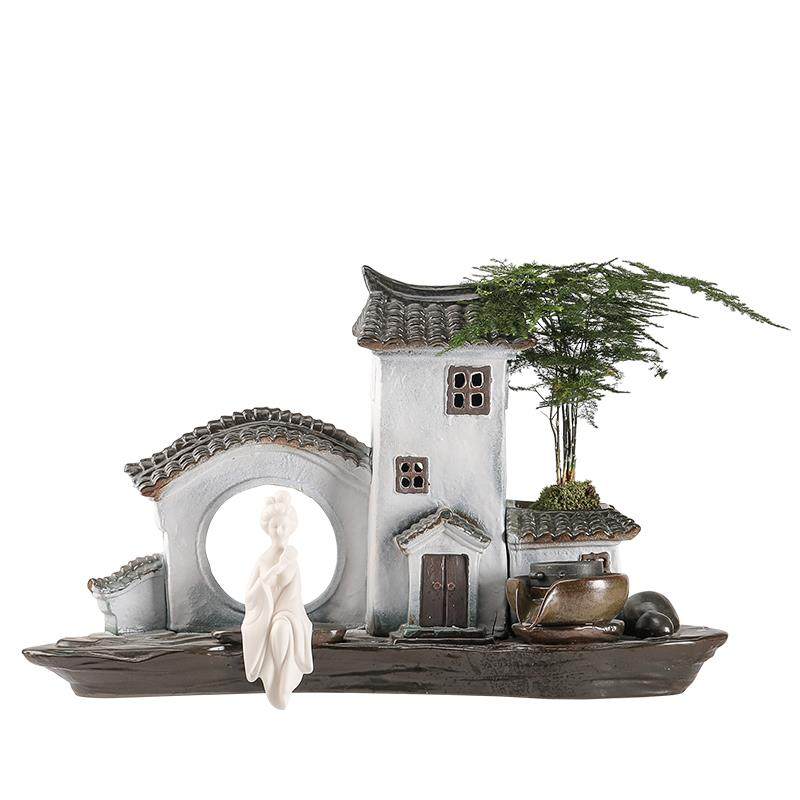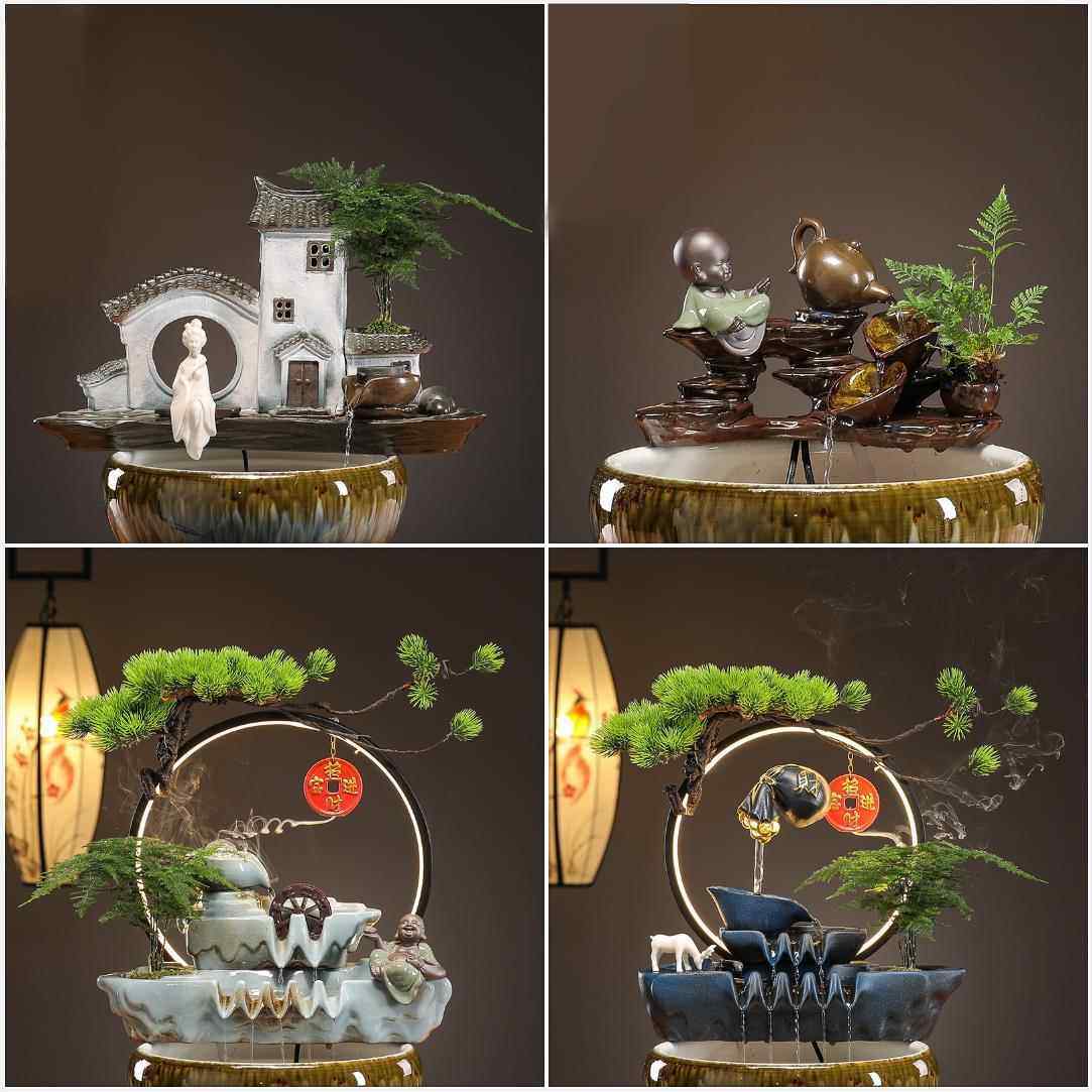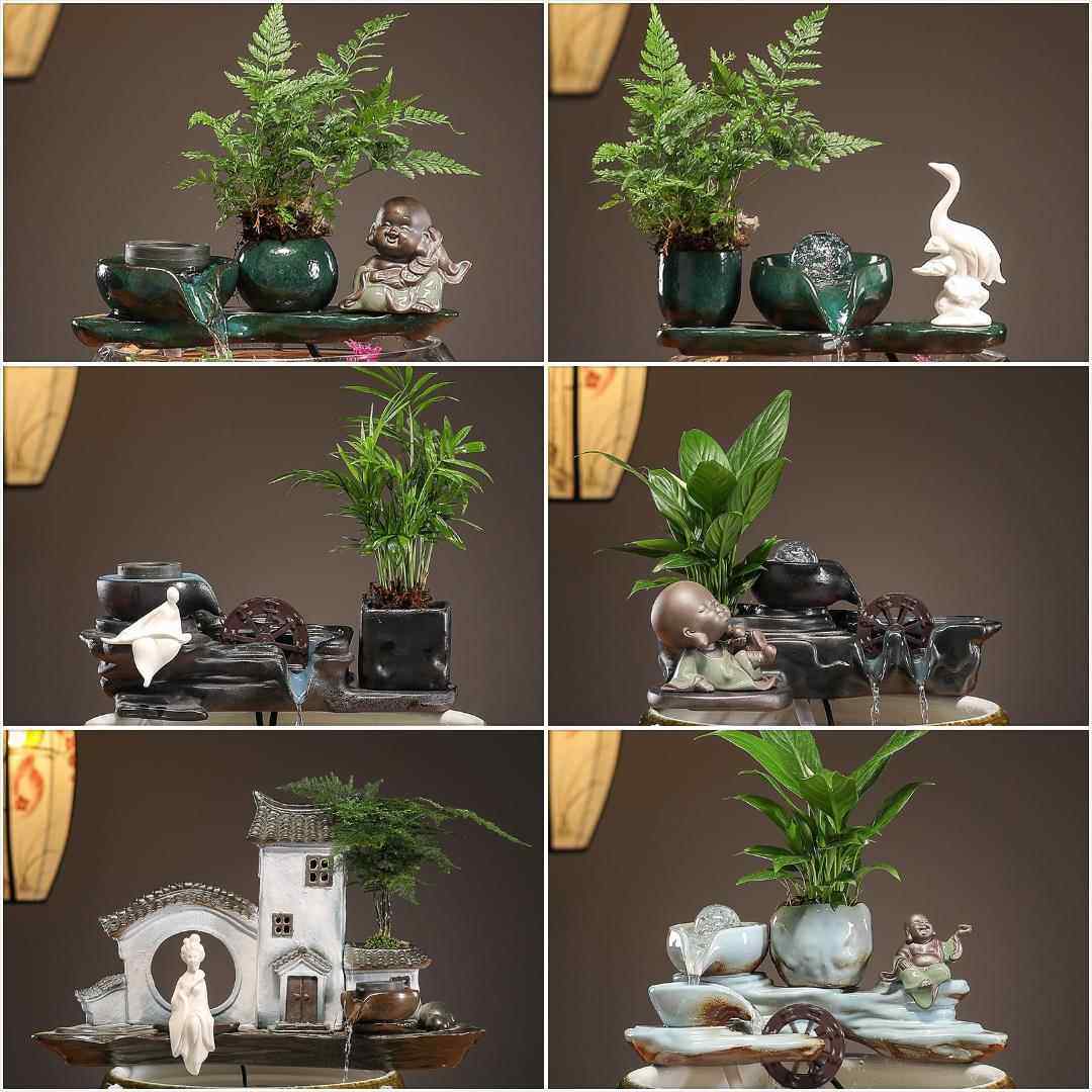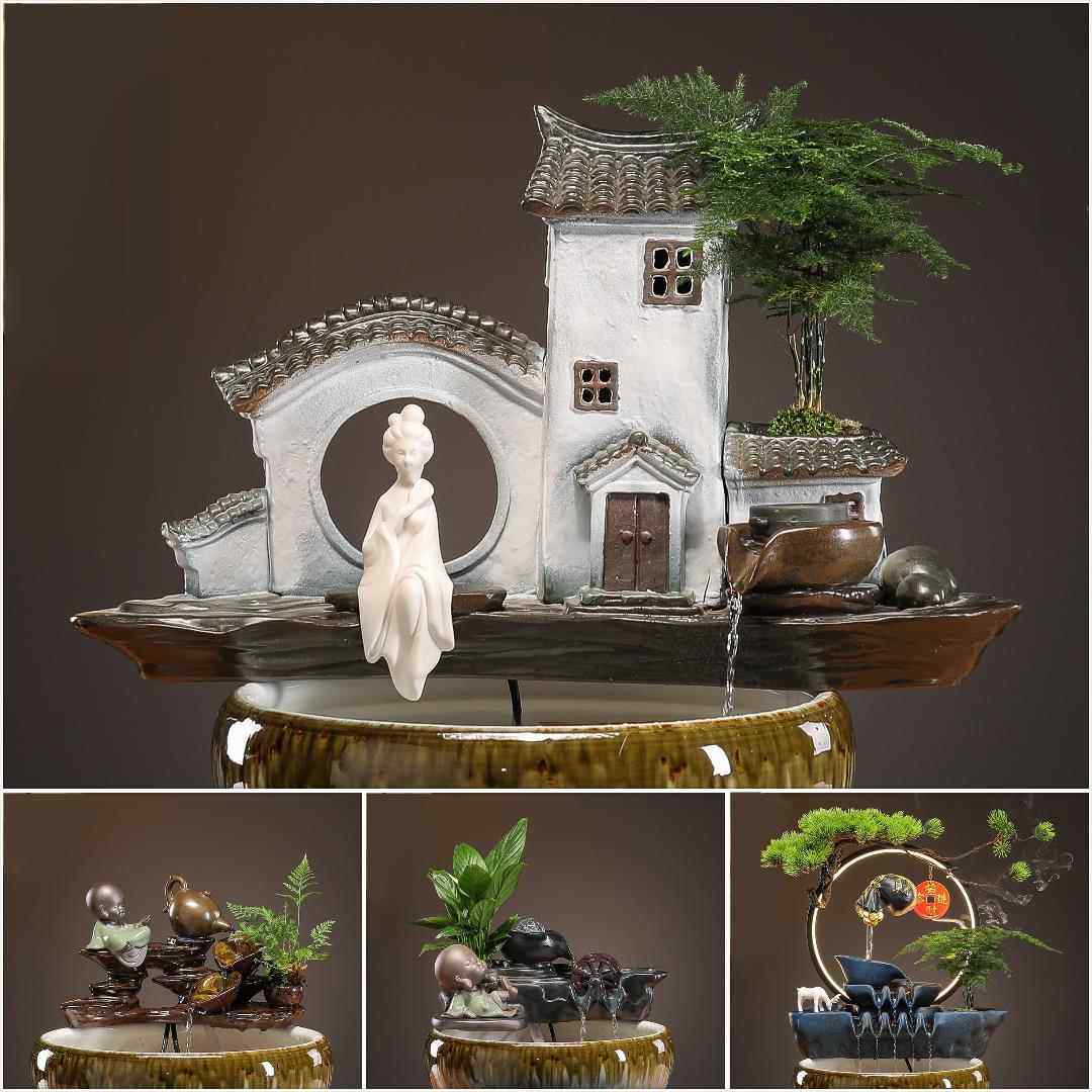 自动循环水鱼缸增氧过滤器鱼盆室内办公室微景观陶瓷招财流水摆件
