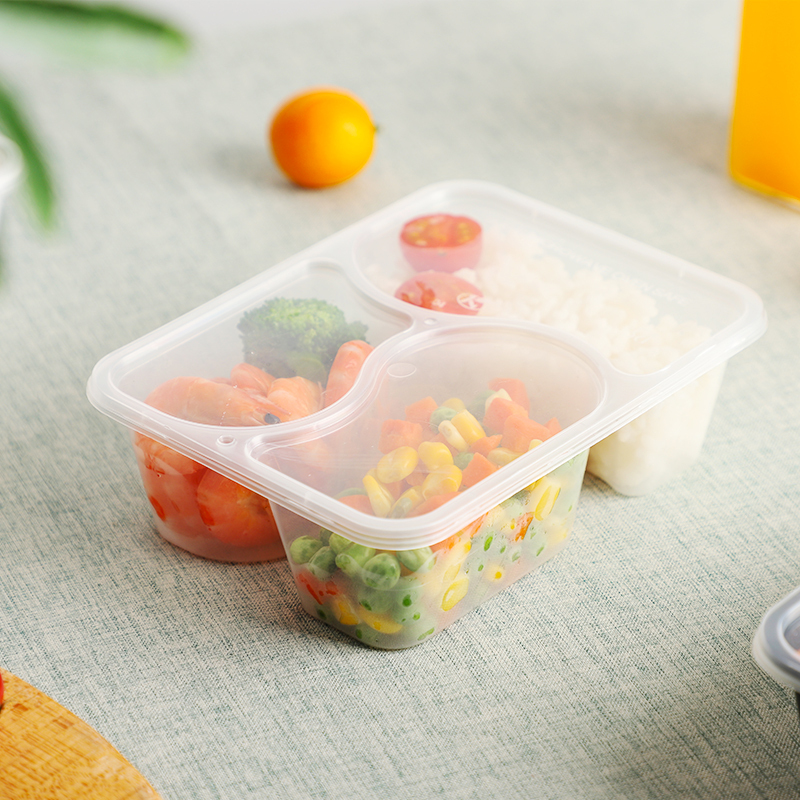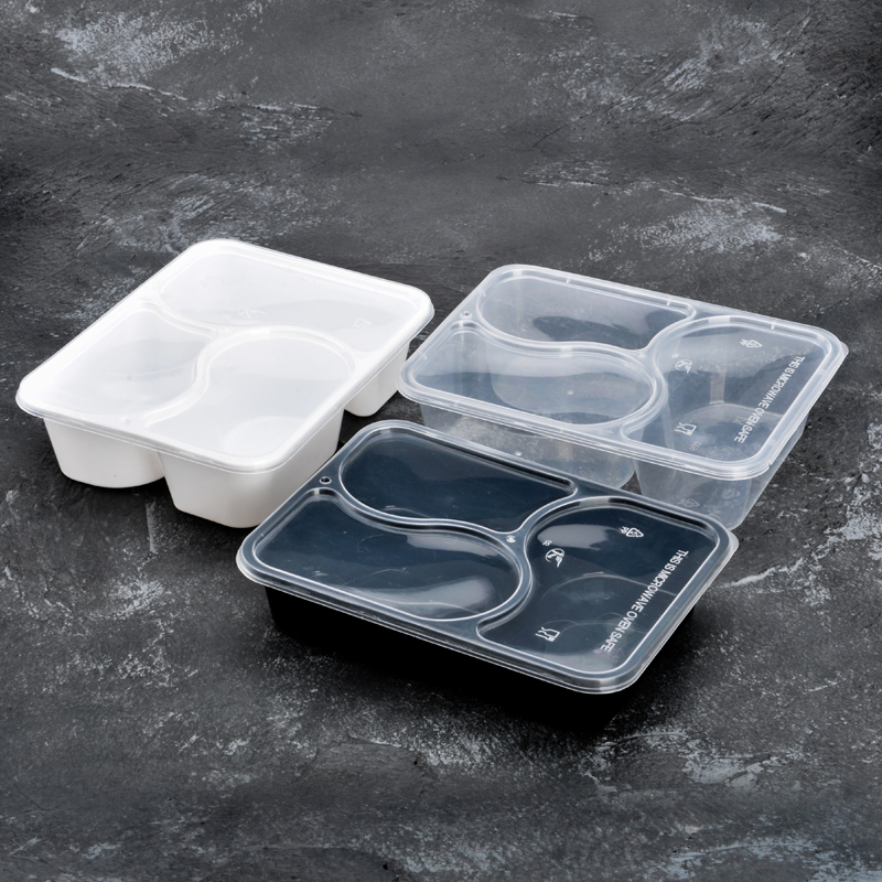 三格500/600/700ml一次性餐盒打包盒快餐便当包邮加厚透/黑外卖盒