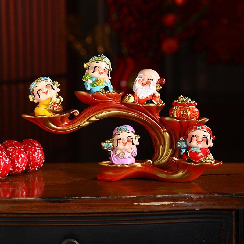 招财纳福五福财神爷客厅玄关家居装饰品乔迁新居桌面摆件工艺品