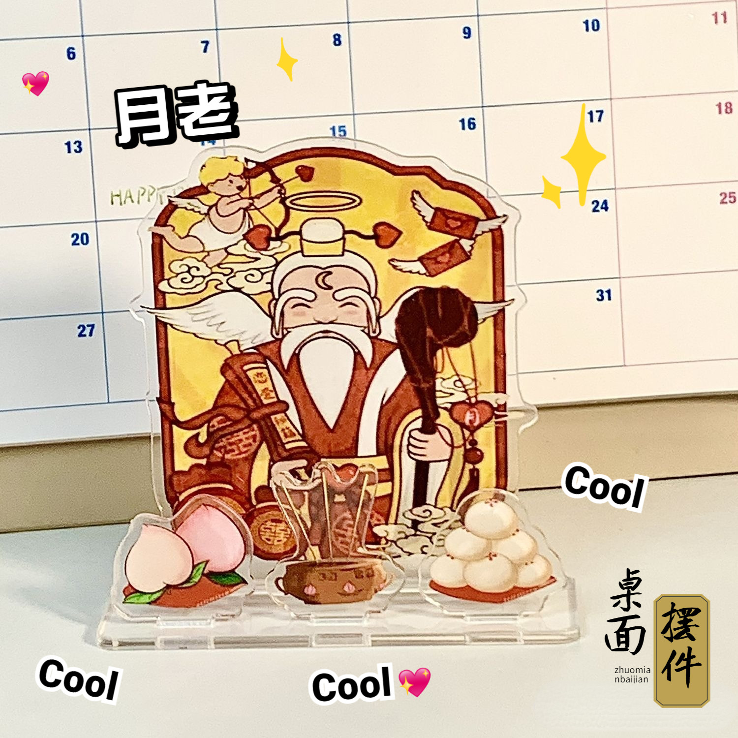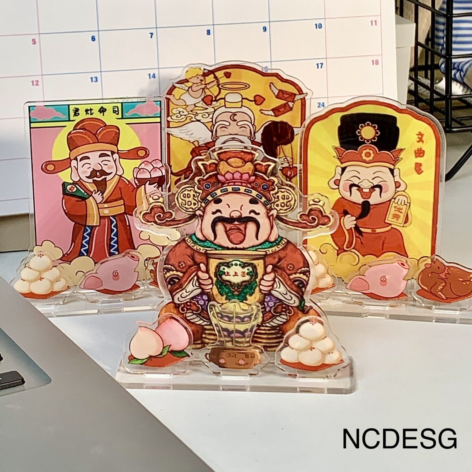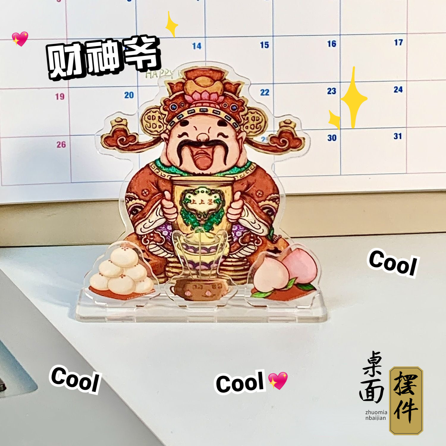 财神爷摆件立牌打工人工位搭子二次元拜神亚克力办公室桌面摆件