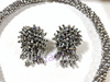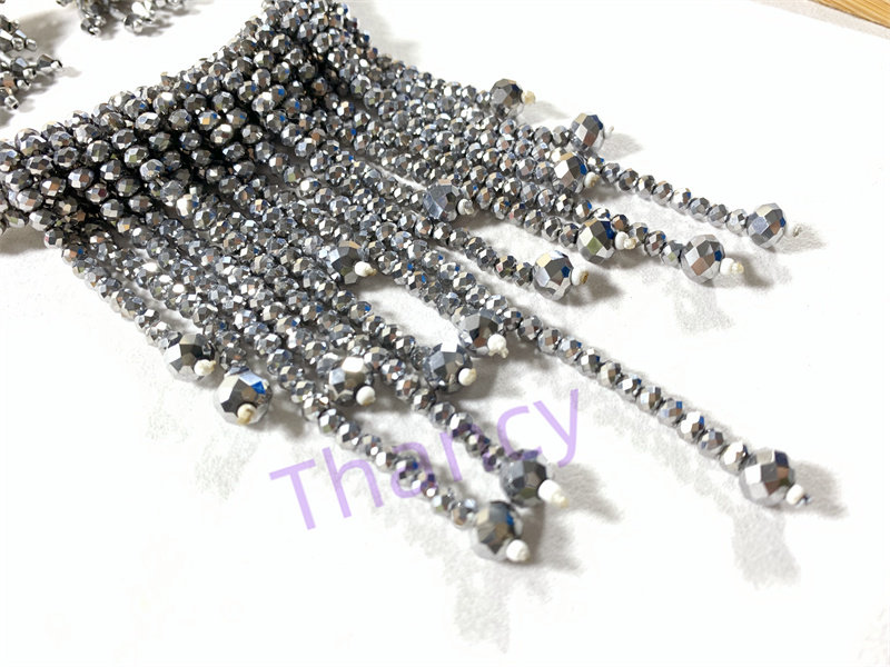 Vintage欧洲回流银灰色玻璃水晶编织流苏瀑布短款项链耳环套装女