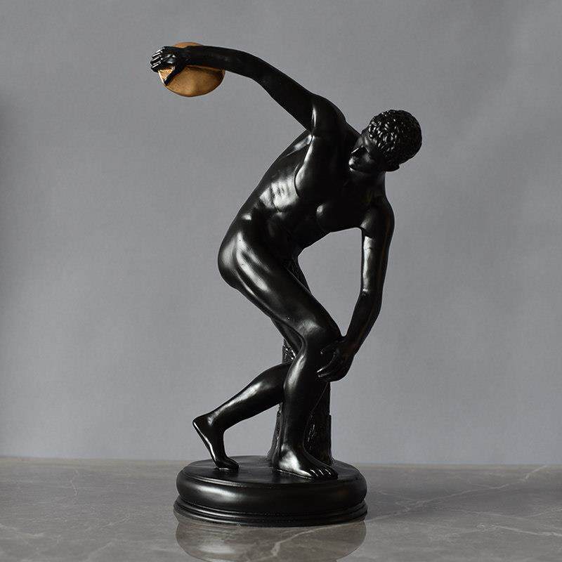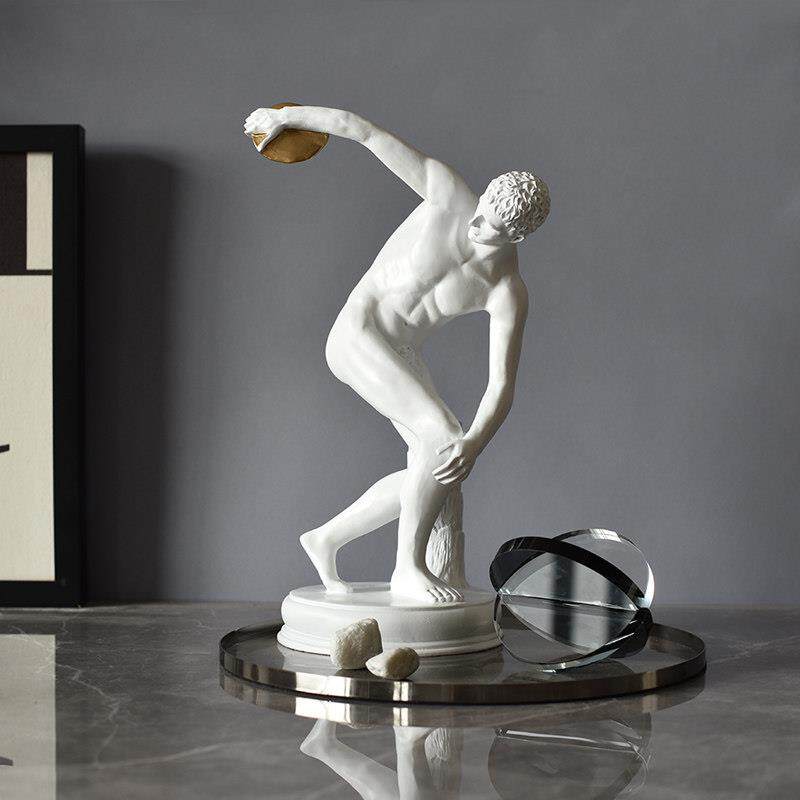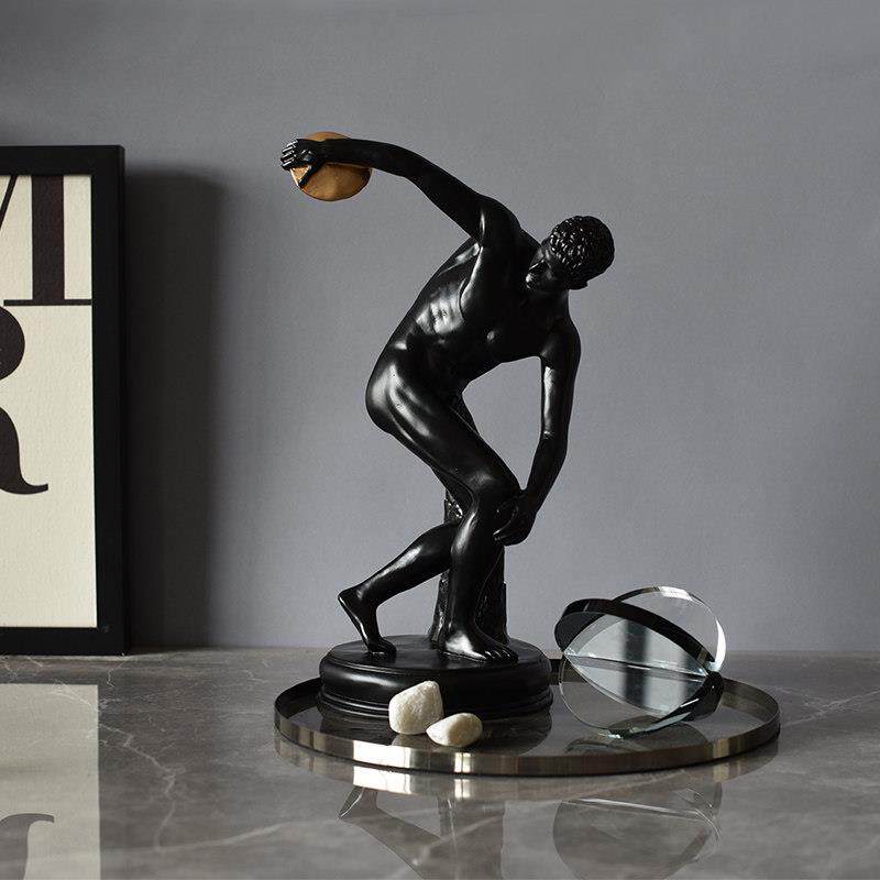 白金色黑色掷铁饼者雕塑软装饰电视柜意式极简健身房艺术创意摆件