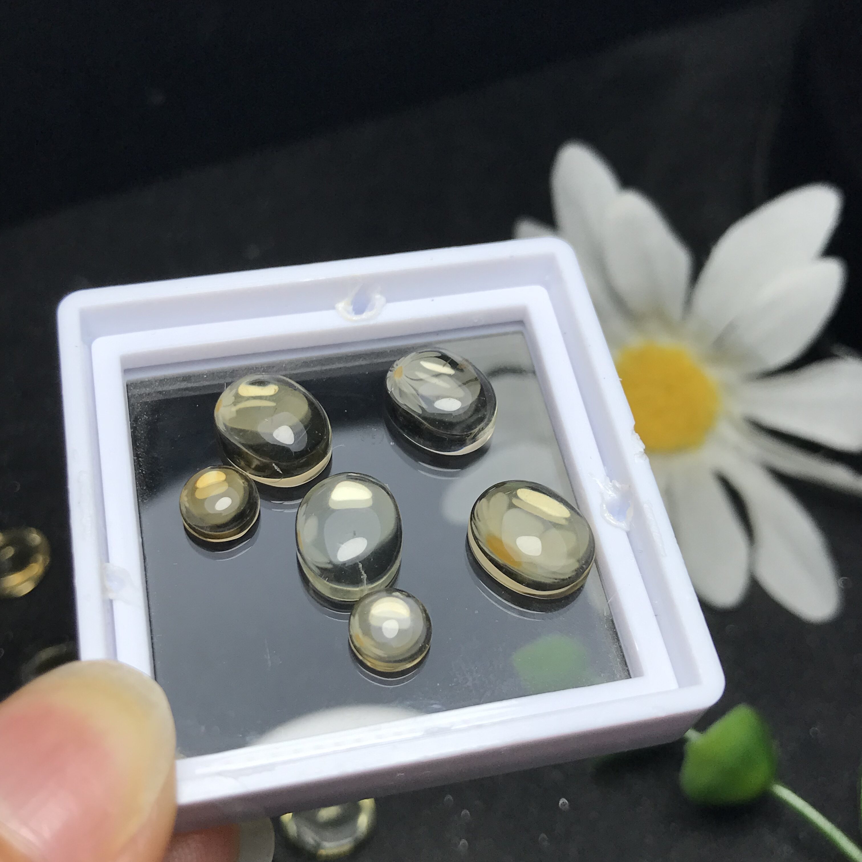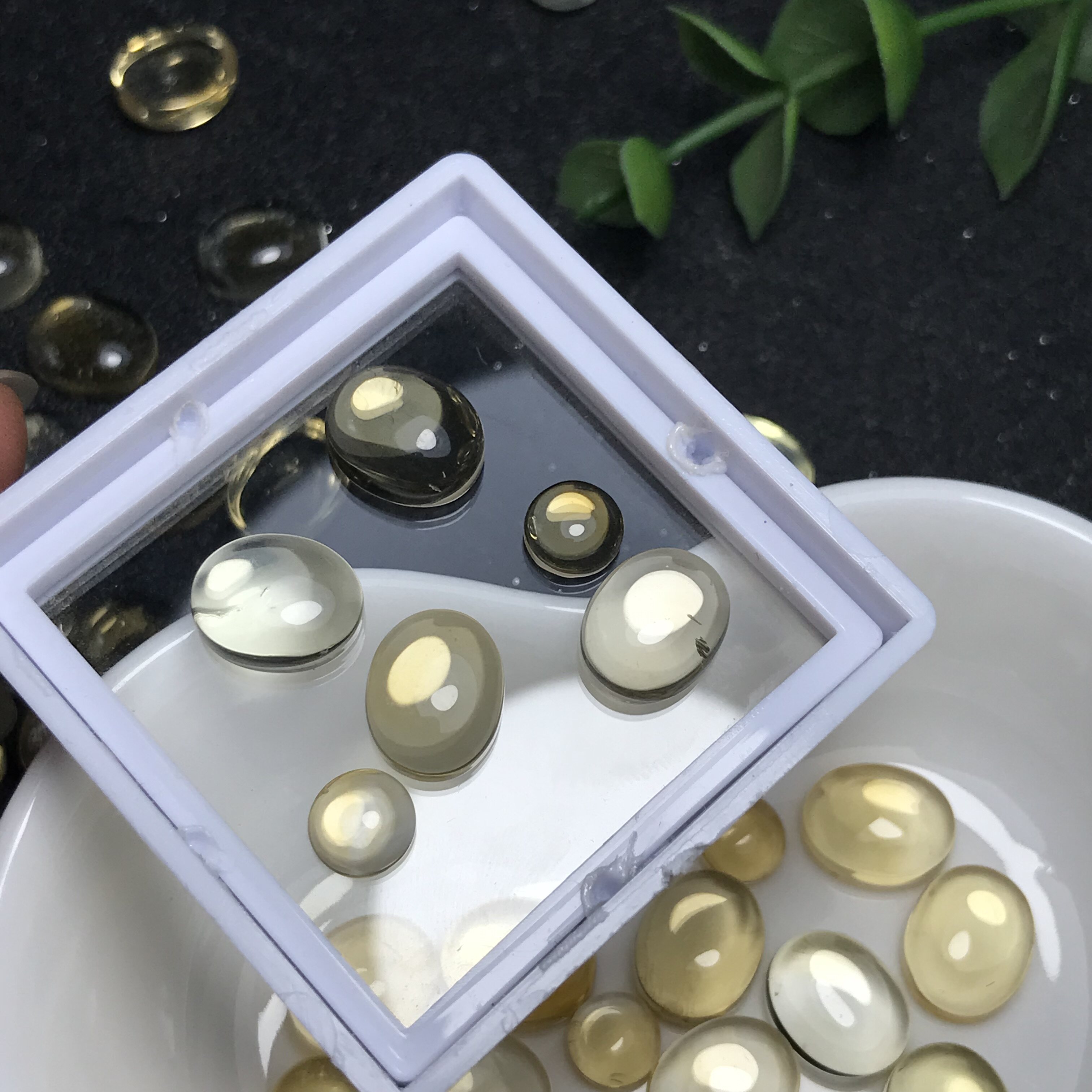 天然巴西黄水晶椭圆形蛋面裸石戒面可镶嵌绕线戒指吊坠耳钉浅黄色
