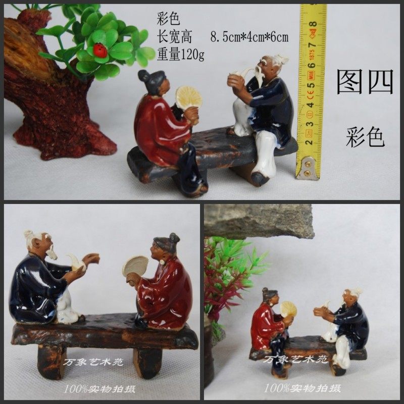 恩爱夫妻假山盆景水族园林鱼缸造景人物陶瓷小摆件配件装饰工艺品