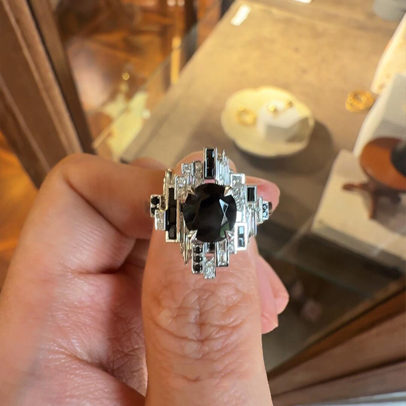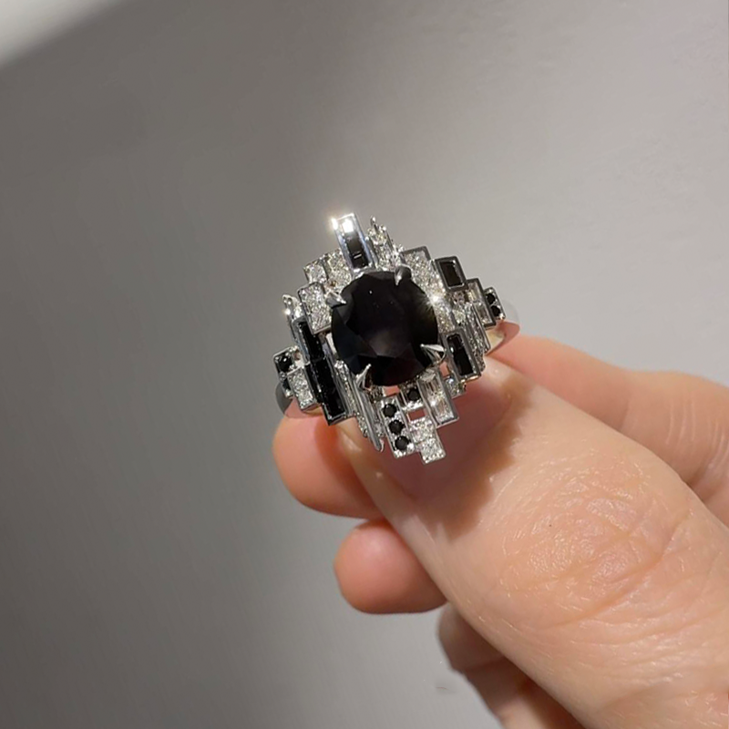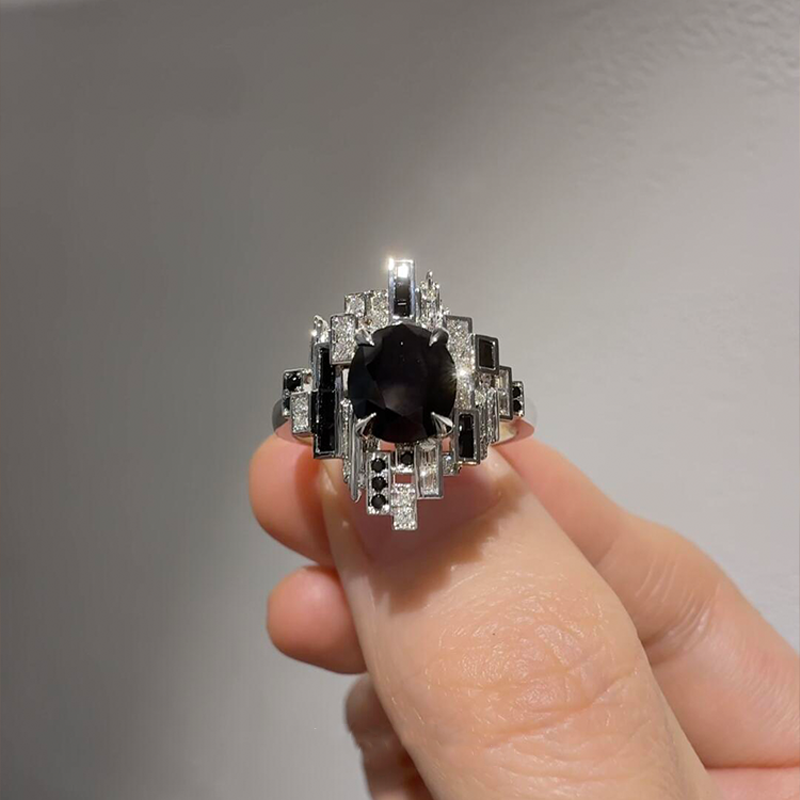 复古朋克风黑色几何拼接戒指女小众设计轻奢高级感2025新爆款指环