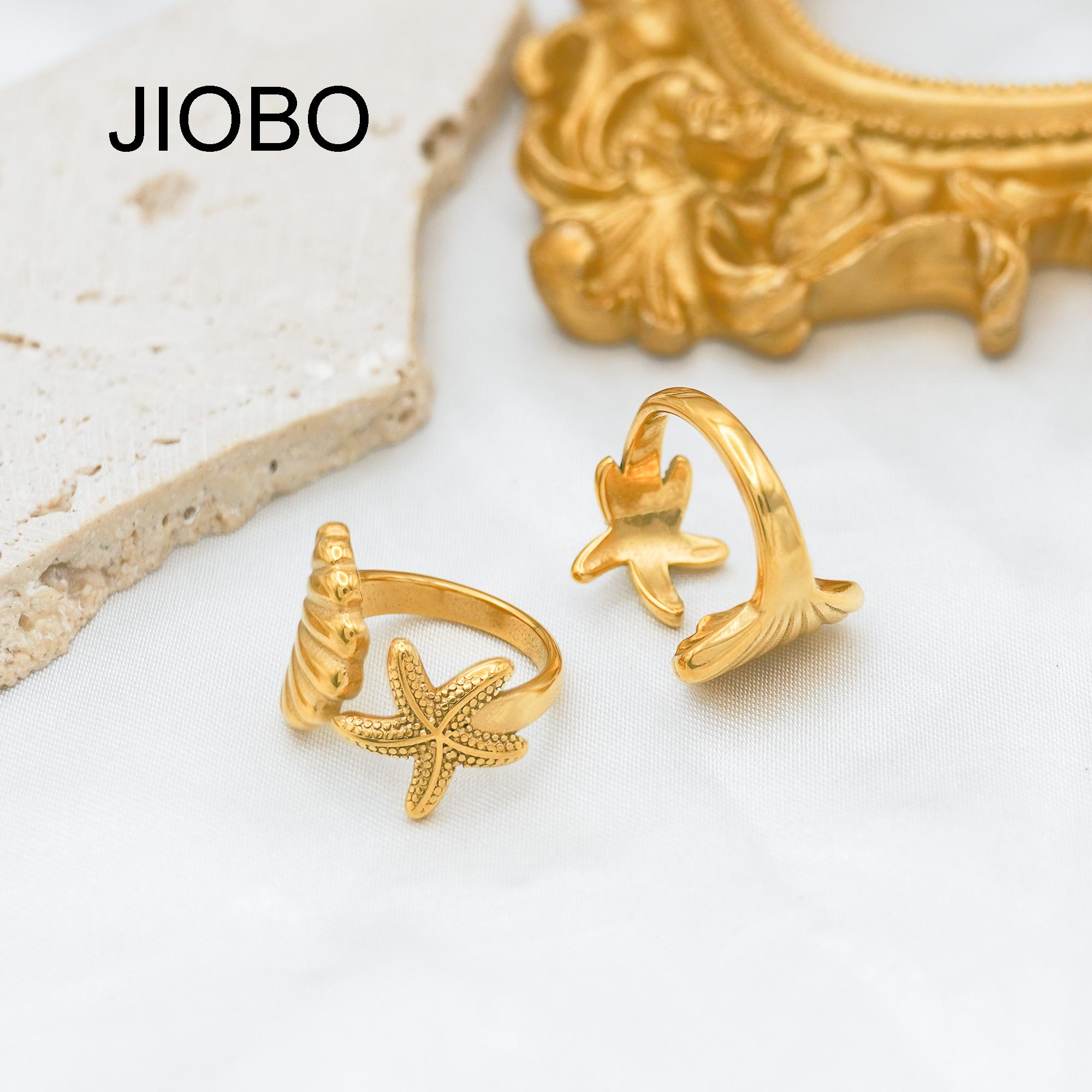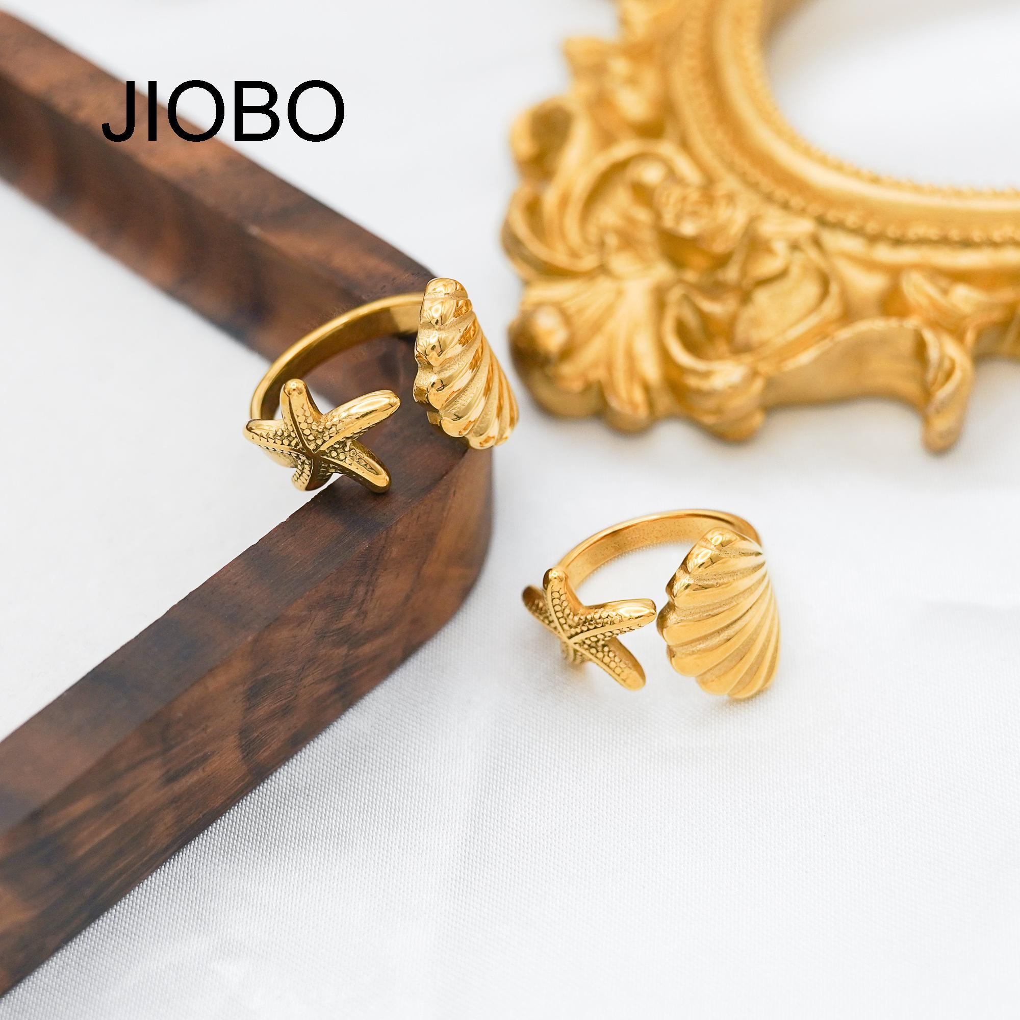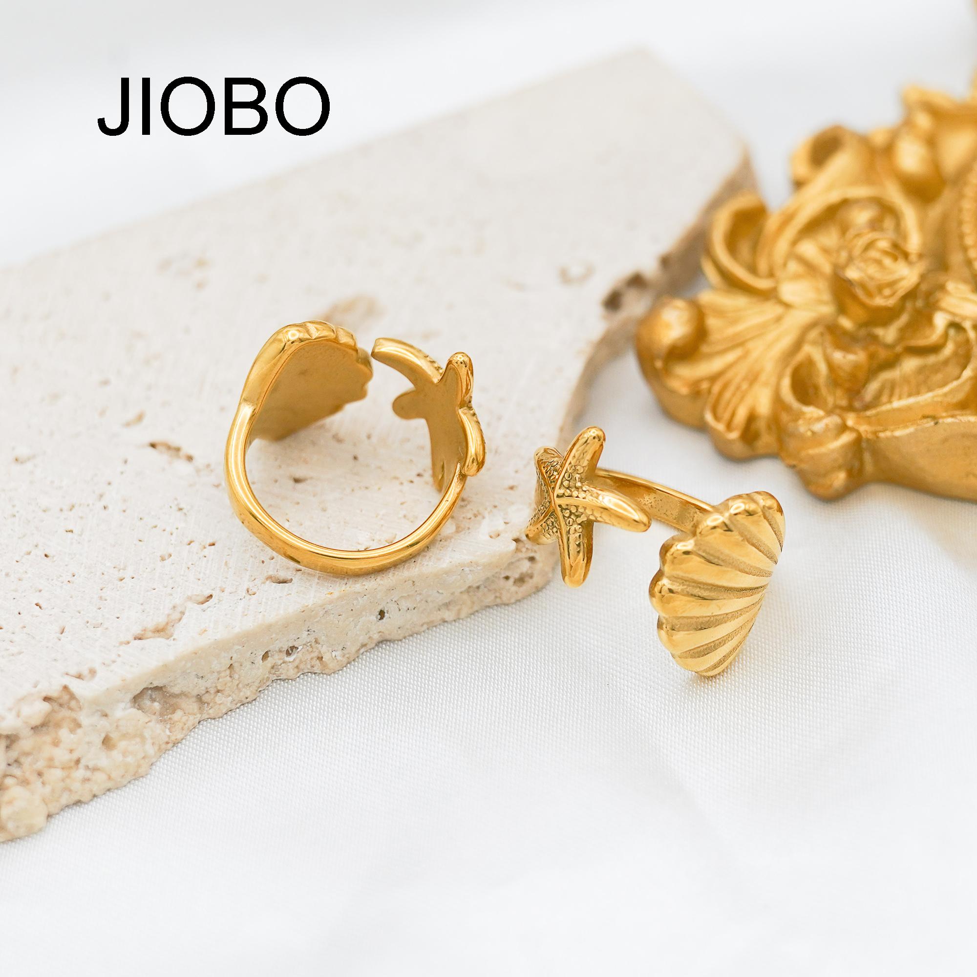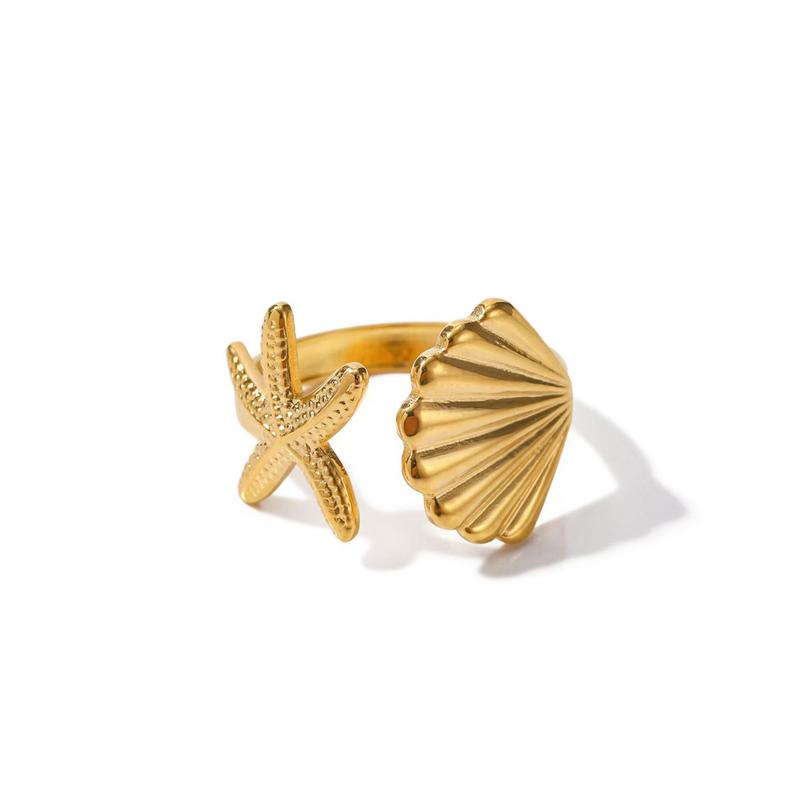 夏季新品海洋元素钛钢戒指镀18k金小众百搭开口可调节戒指指环
