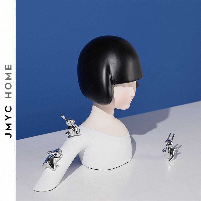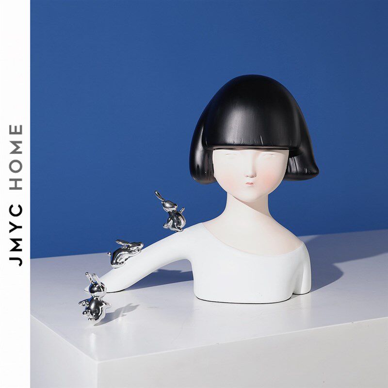 儿童房装饰c可爱短发卡通女孩桌面摆件简约样板房小姑娘软装摆设