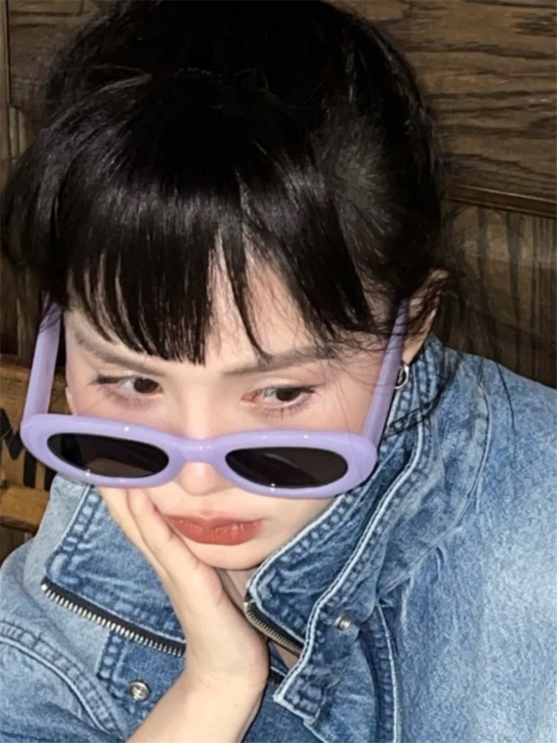 新款2023紫色椭圆形大圆脸显瘦墨镜高级感凹造型美式太阳眼镜女款