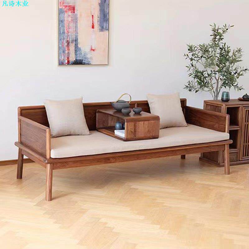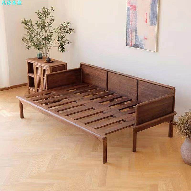全实木黑胡桃木罗汉床小户型推拉床现代简约樱桃木中式床榻沙发床