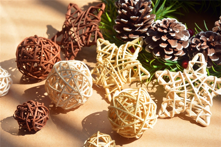 原木三色藤球装饰手工编织藤编装饰森系复古干花橱窗摄影道具摆件