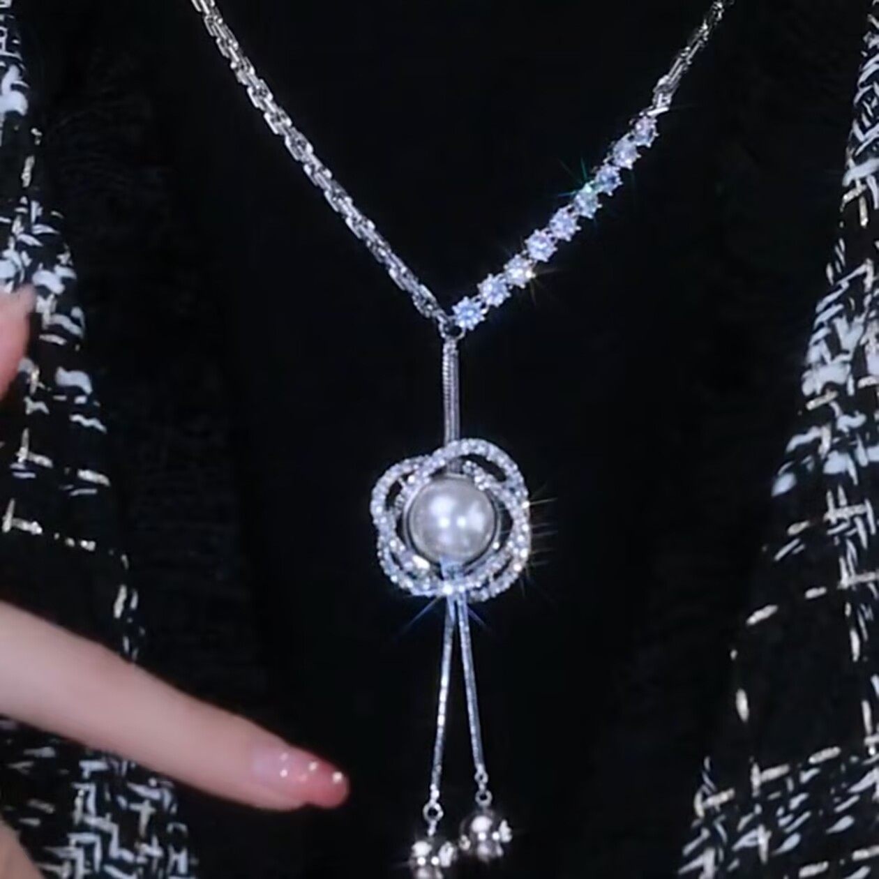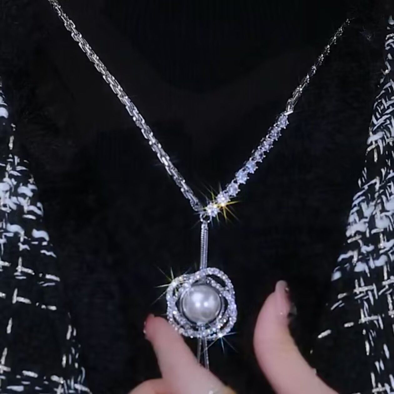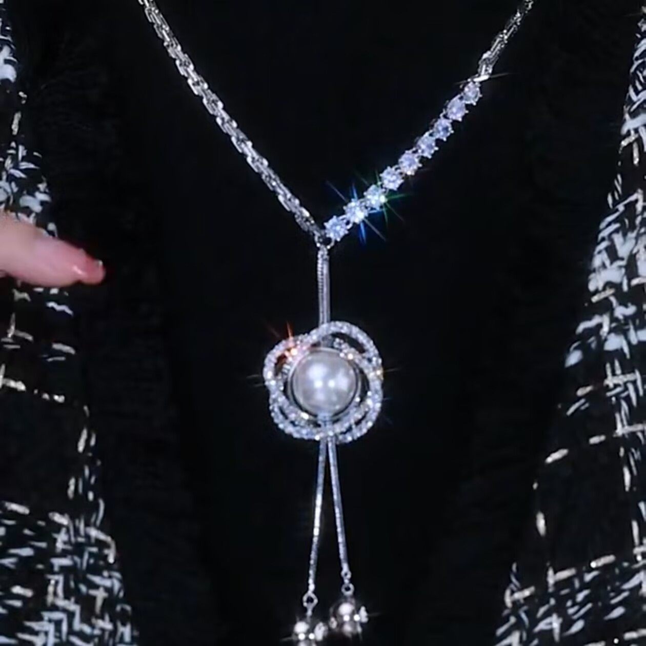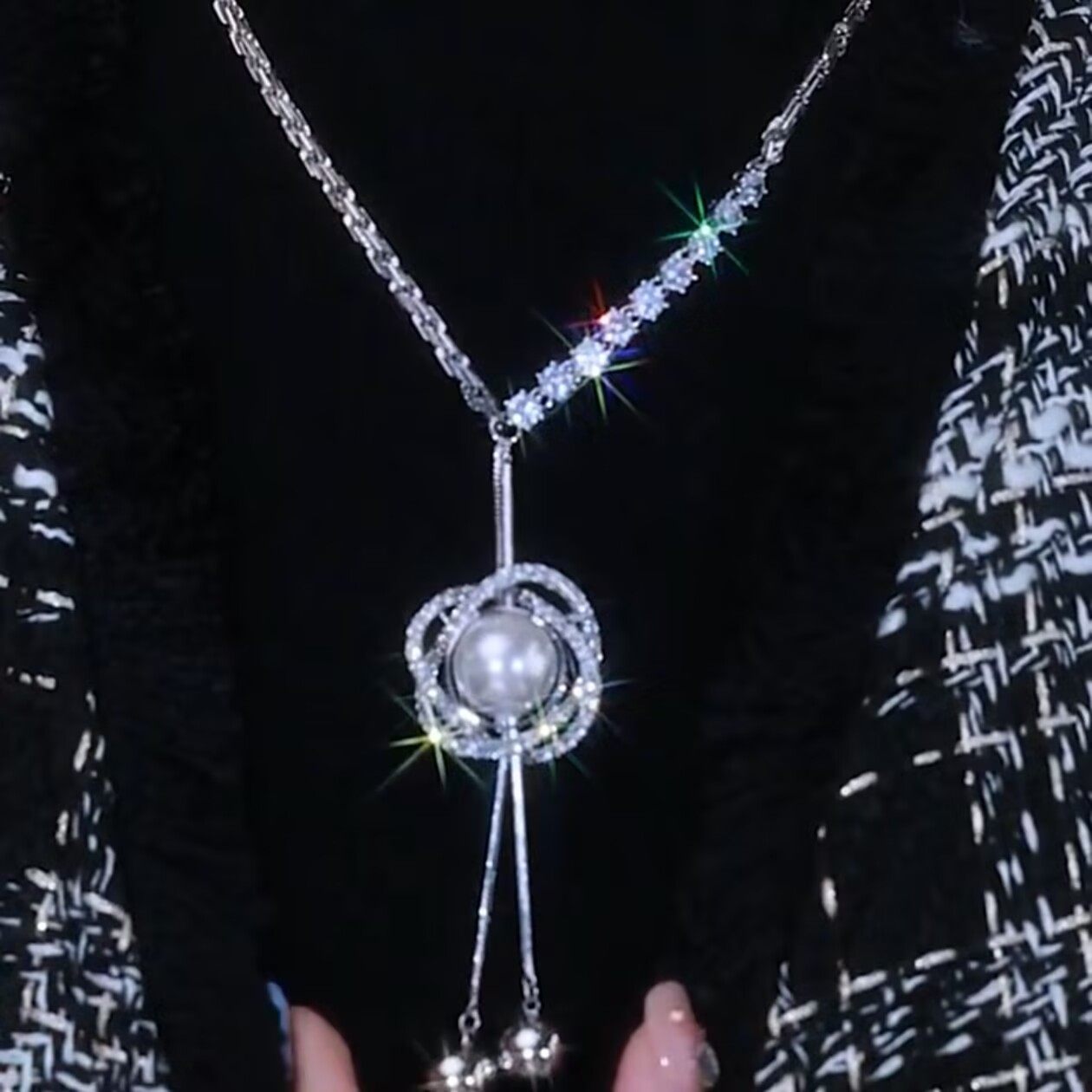 秋冬银色缠绕圆形珠珠毛衣链女网红爆款轻奢百搭小众设计感毛衣链