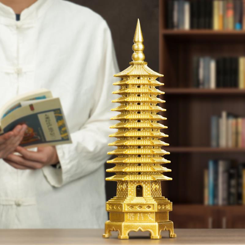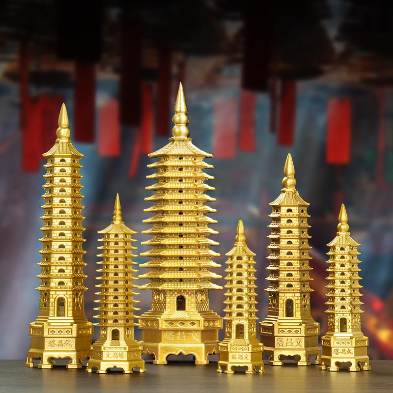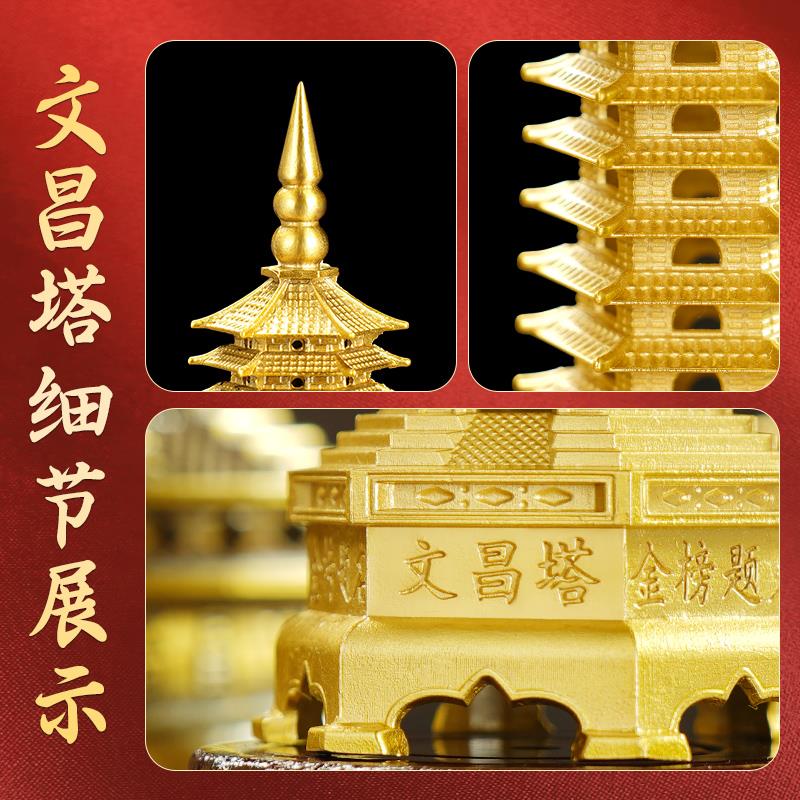 文昌塔纯黄铜摆件九层十三层宝塔书房办公室装饰品金榜题名玄关