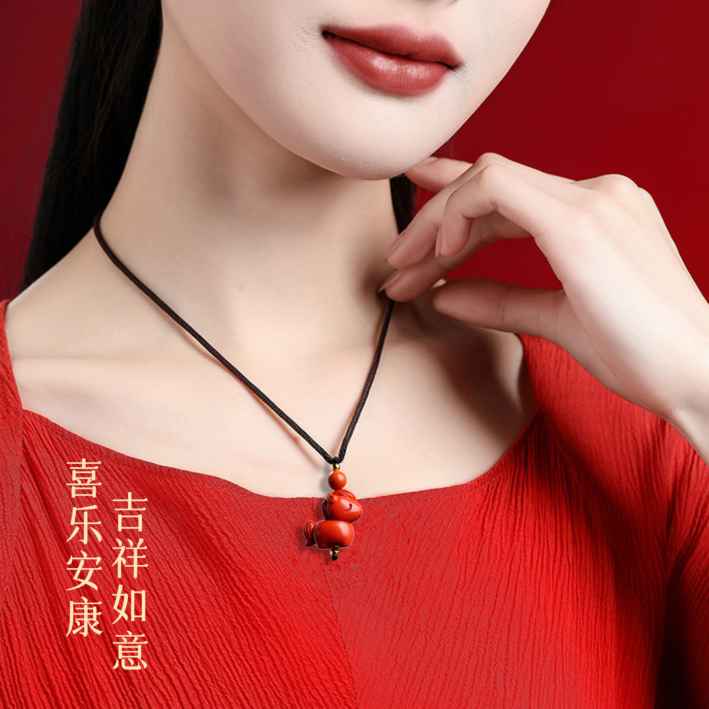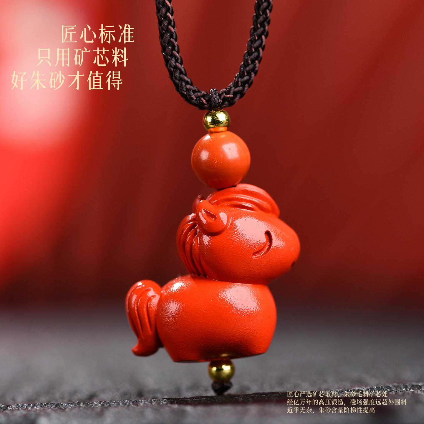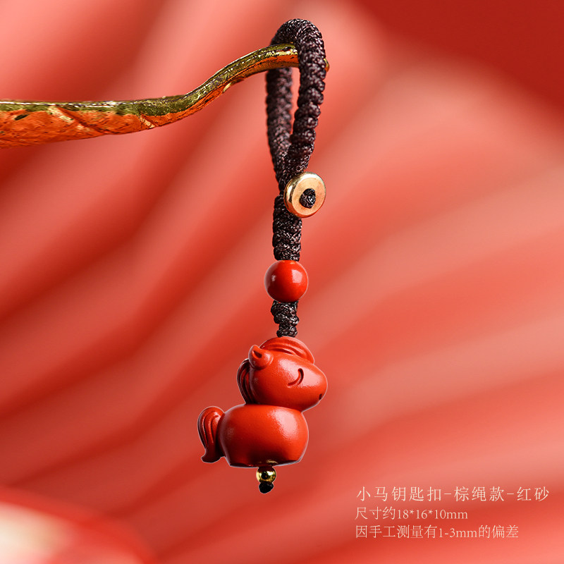天然朱砂本命年小马吊坠男女手机链钥匙扣挂件生肖马红色挂饰礼物