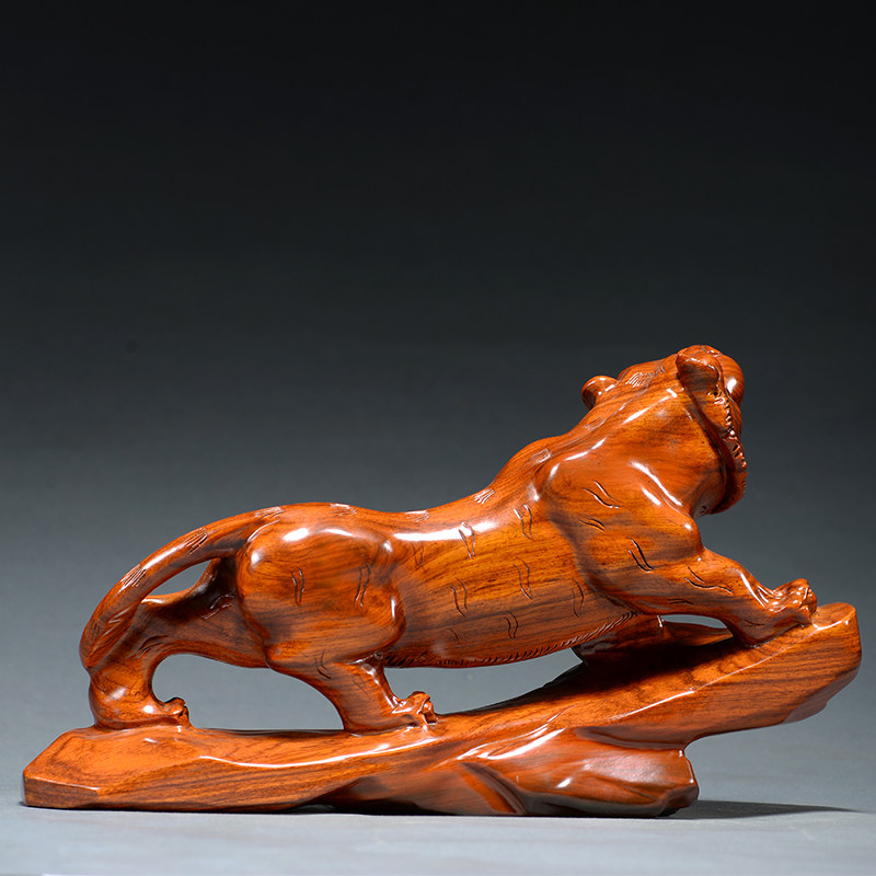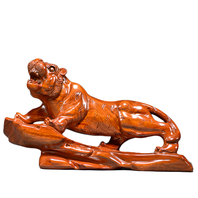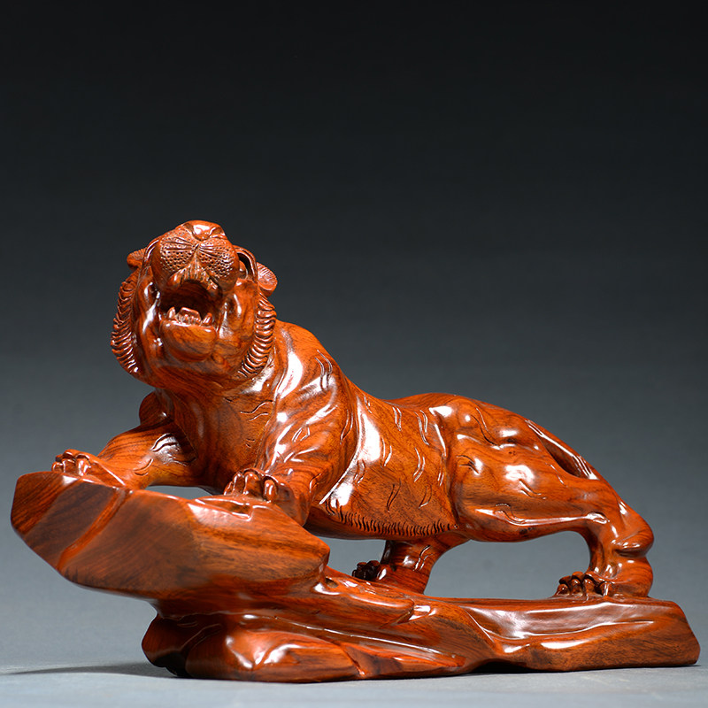 花梨木老虎摆件木雕客厅桌面客厅玄关过年装饰品红木年会定制礼品