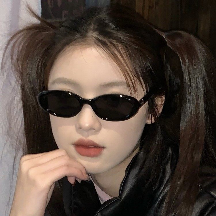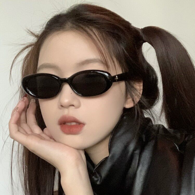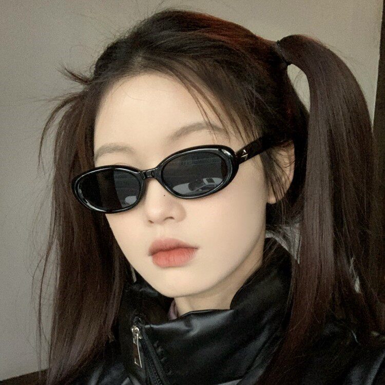 欧美肯豆小脸椭圆形黑色墨镜复古高级感ins韩版防紫外线太阳眼镜
