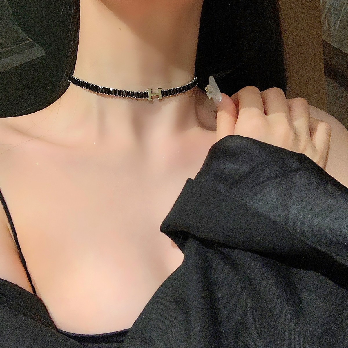 H黑色字母项链女高级设计感轻奢小众锁骨链辣妹ins脖颈链甜酷项圈