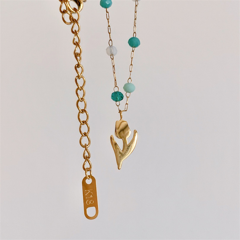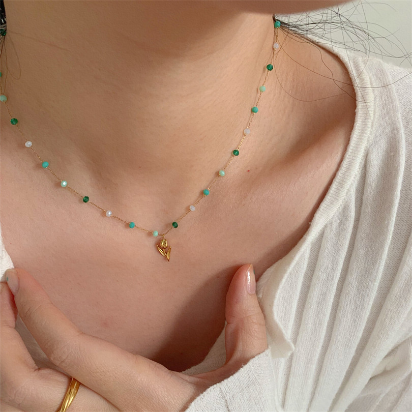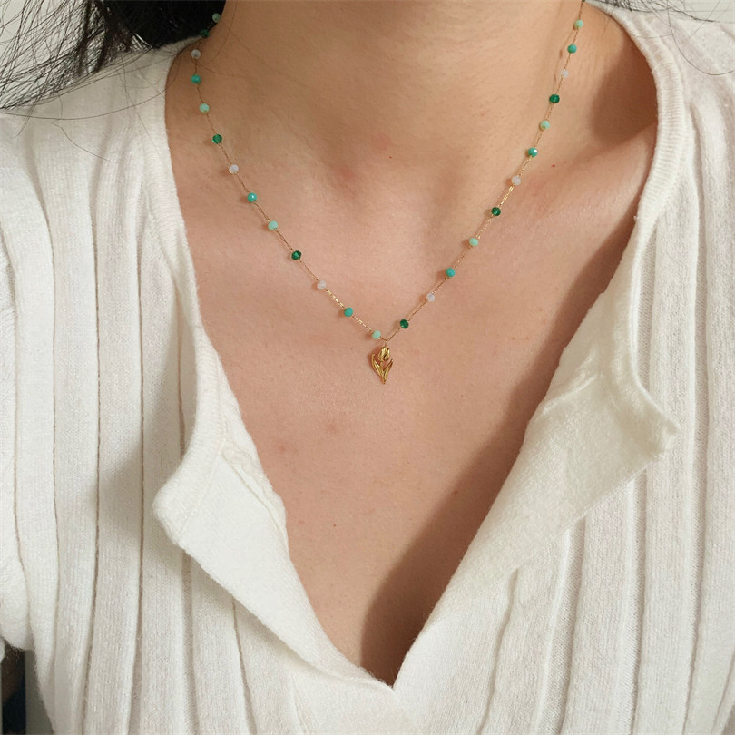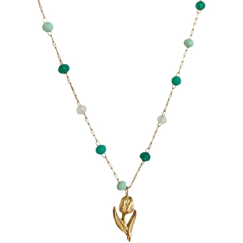 WITH GJ是春天的感觉 复古小郁金香绿色彩珠项链女法式别致锁骨链