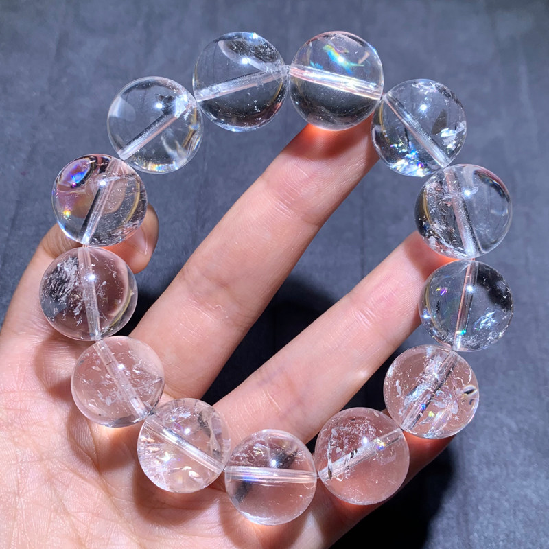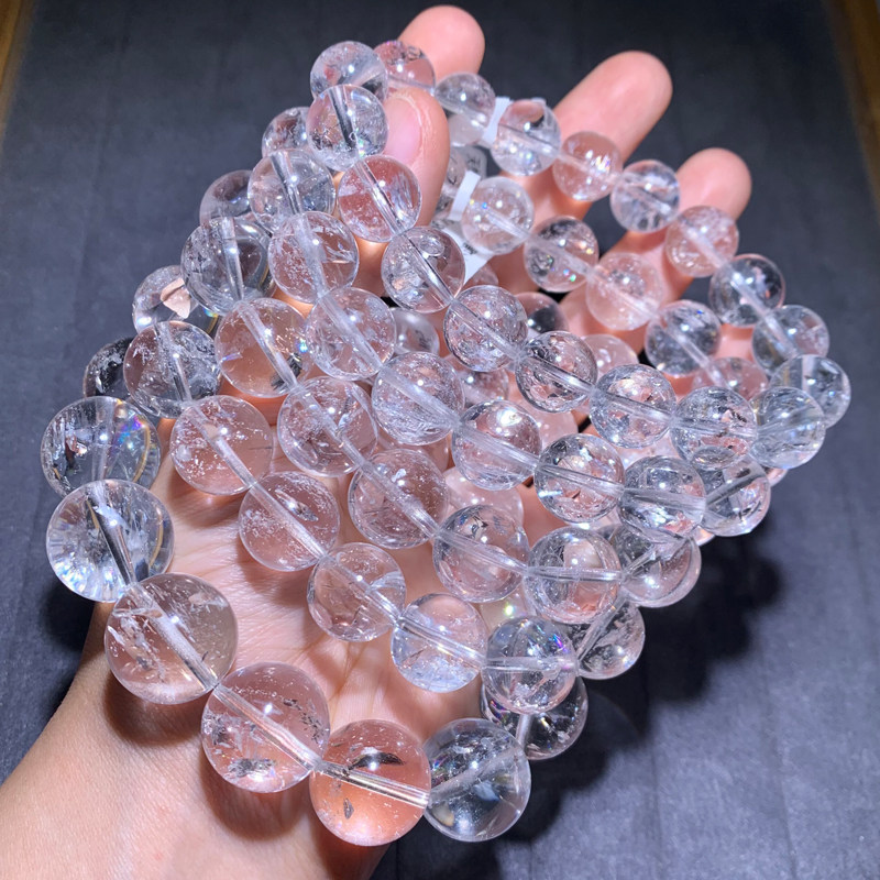天然冰透彩虹白水晶单圈手链白色水晶手串饰品一物一图礼物男女款
