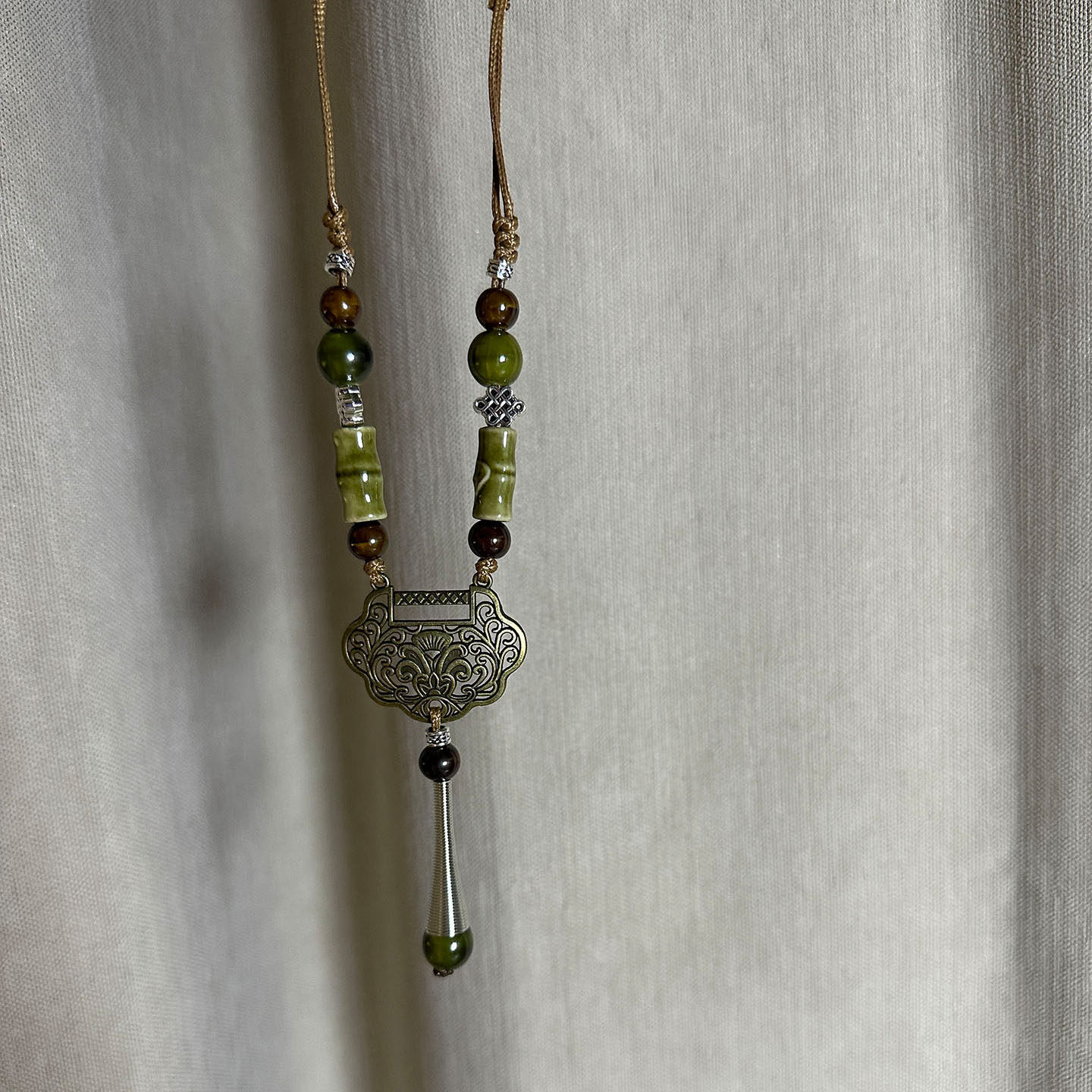 毛衣链秋冬高档大气高级轻奢精致百搭长款吊坠小众平安锁陶瓷项链