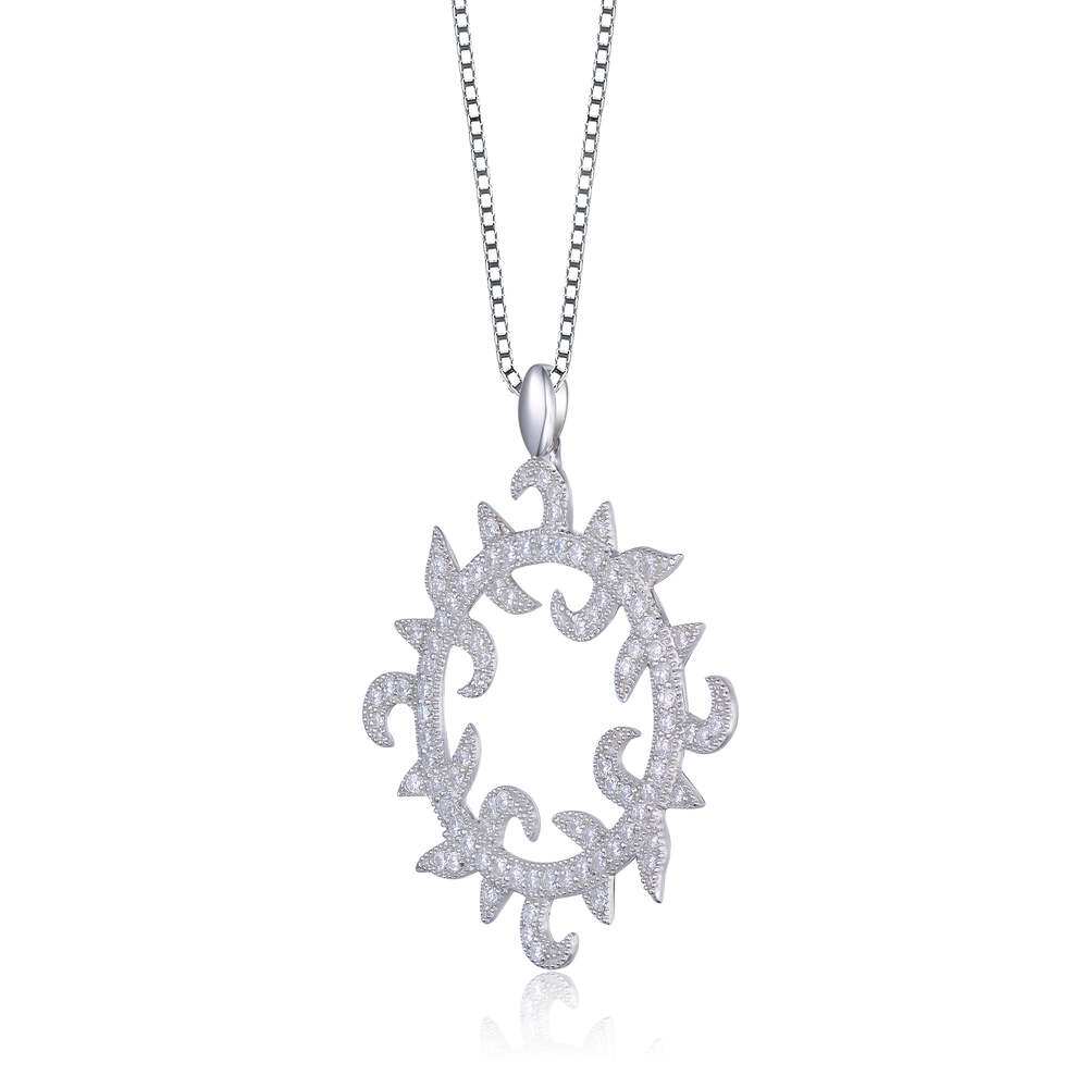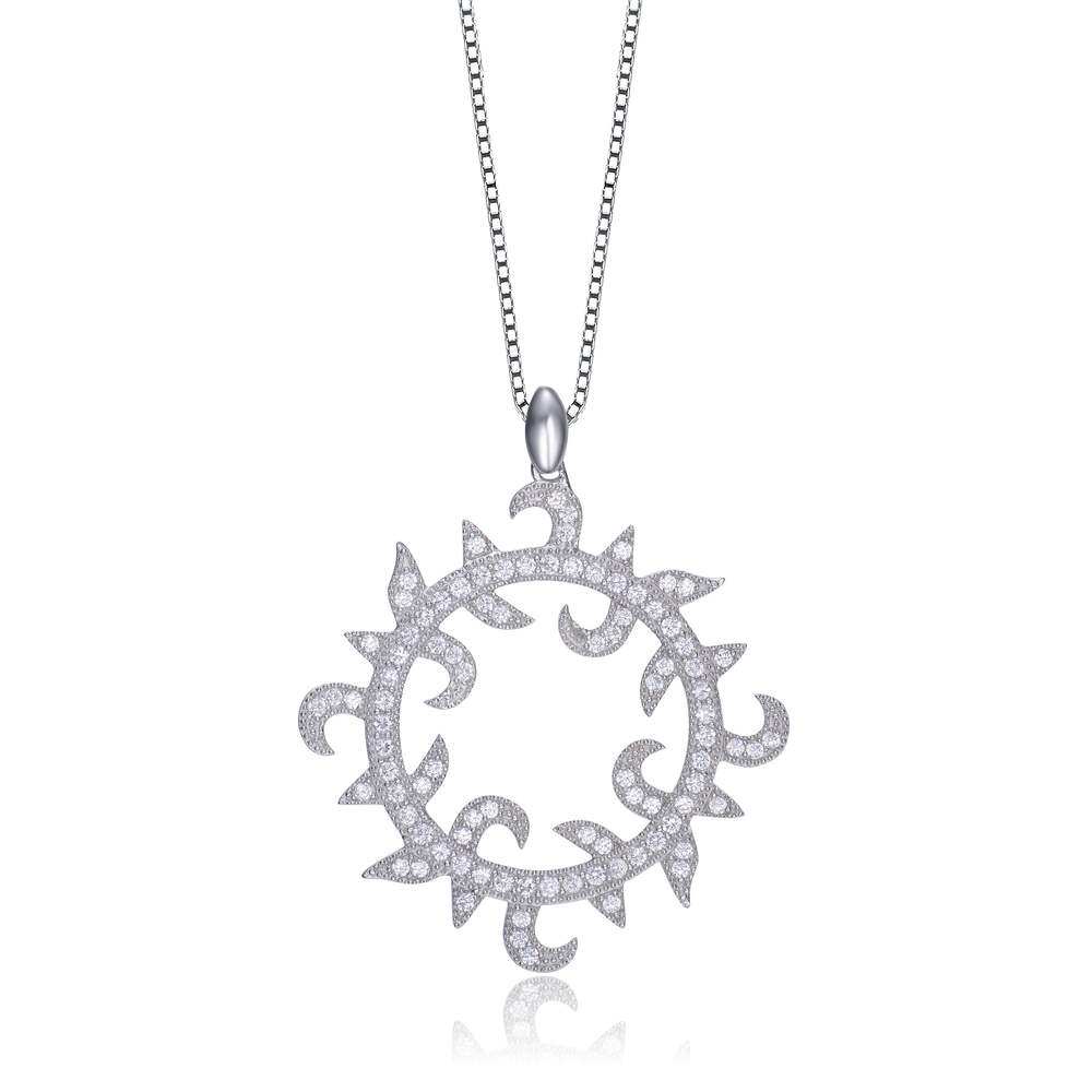 自营 geneviveC.Z.纯银透明立方氧化锆太阳主题项链 - 白色 美国