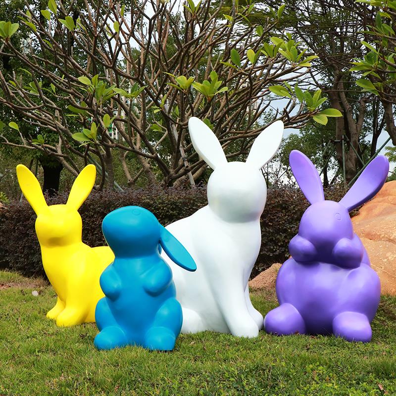 户外花园庭院草坪园林景观小品玻璃纤维抽象白色兔子雕塑装饰品摆