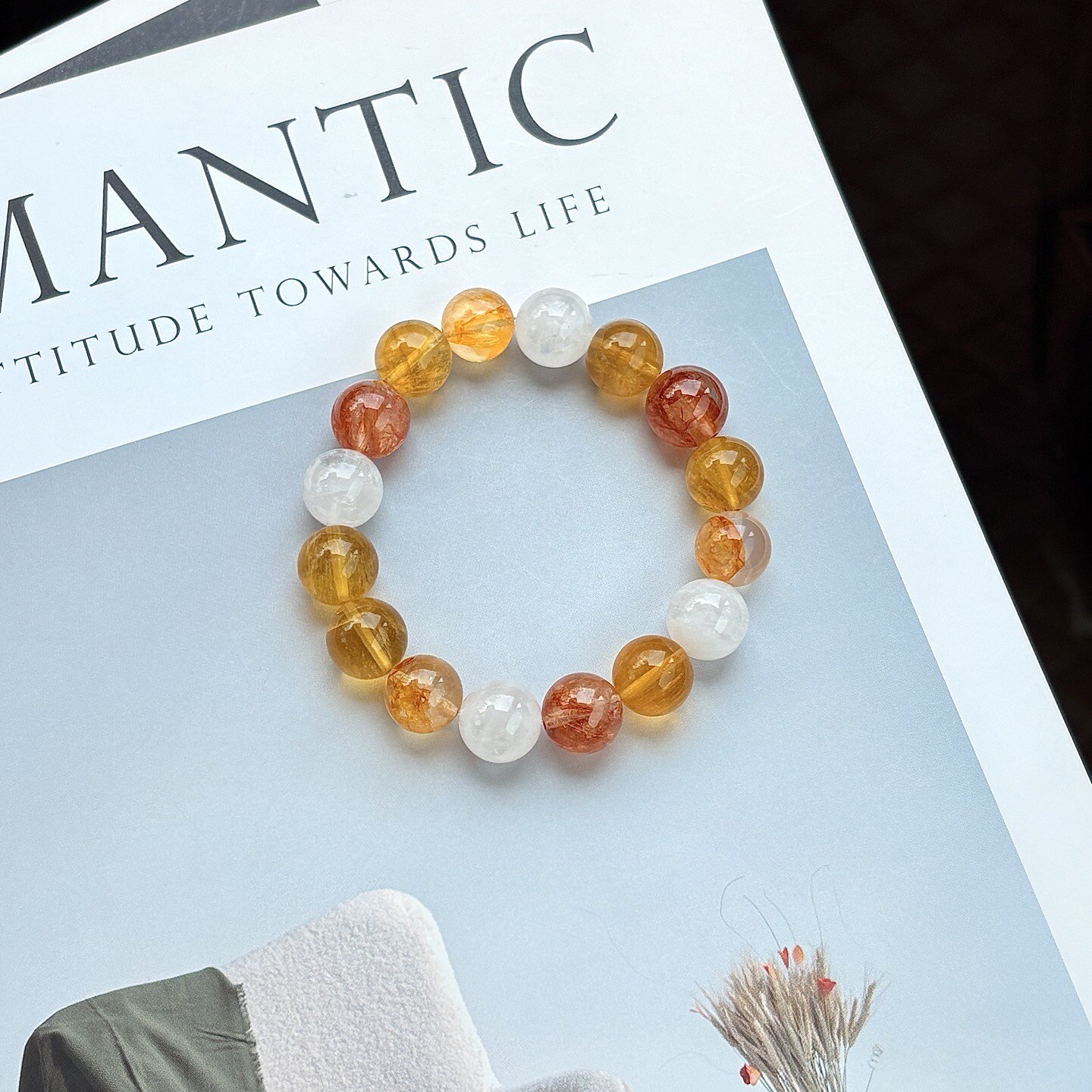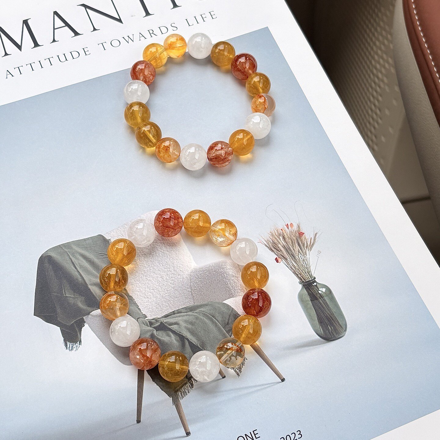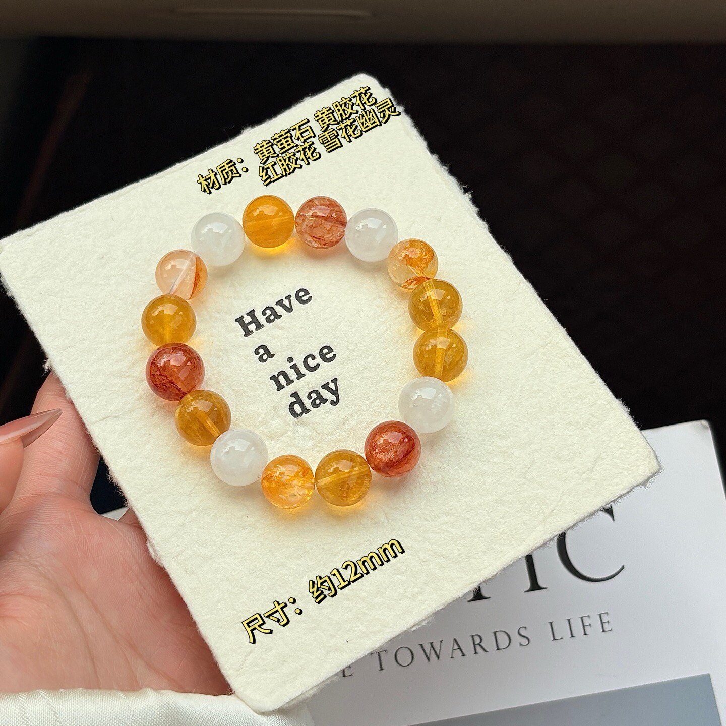 原创天然黄胶花黄萤石红胶花雪花幽灵黄色系水晶手串复古显白气质
