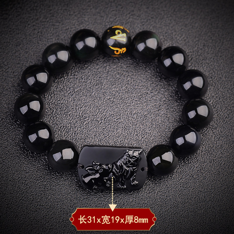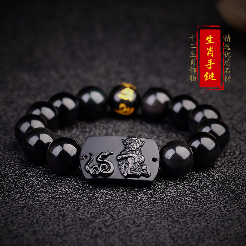 天然黑曜石手链2026年生肖六合手链鼠牛虎兔龙蛇马羊猴鸡狗猪手串