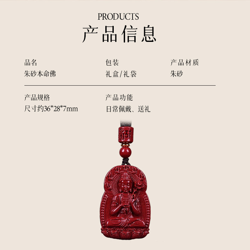 遇见普陀山朱砂本命佛吊坠男女士生肖守护神挂件高含量紫金砂项链