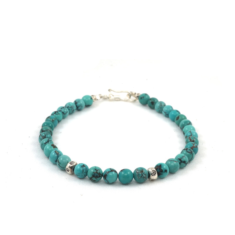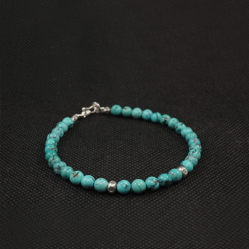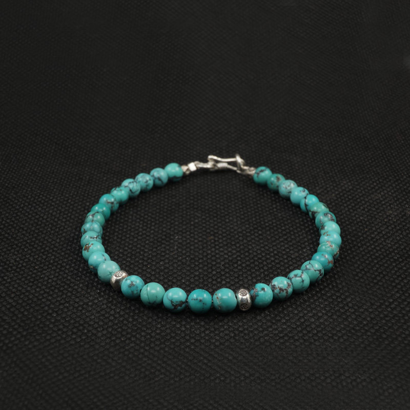 POHIER原创轻奢潮牌天然原矿绿松石纯银珠子情侣手链男女手串