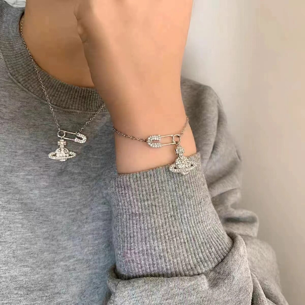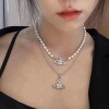 【高品质】西太后土星珍珠项链女别针立体星球高级锁骨链夏季热销