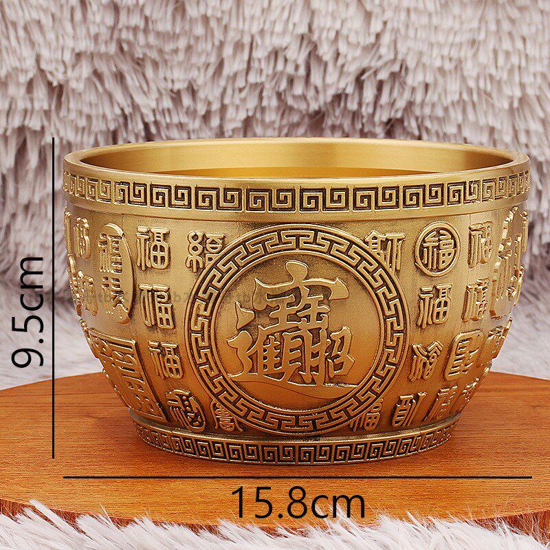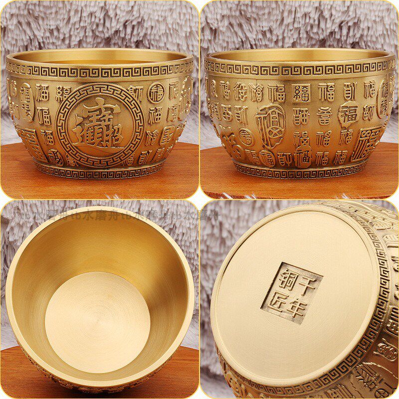黄铜米缸聚宝缸平底招财进宝聚宝盆摆件纯铜百福缸客厅玄关装饰品