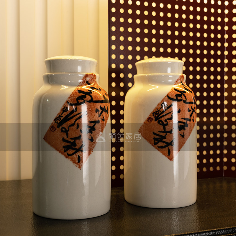 新中式博古架摆件组合样板间售楼处茶室书房客厅软装饰品花瓶摆设