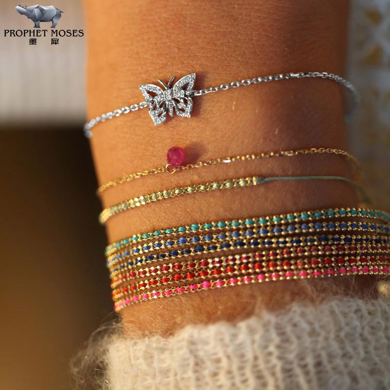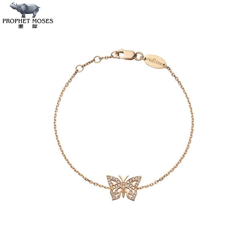 redline/红绳女士2023新款Ephemere0.08克拉蝴蝶圆形钻石金链手链