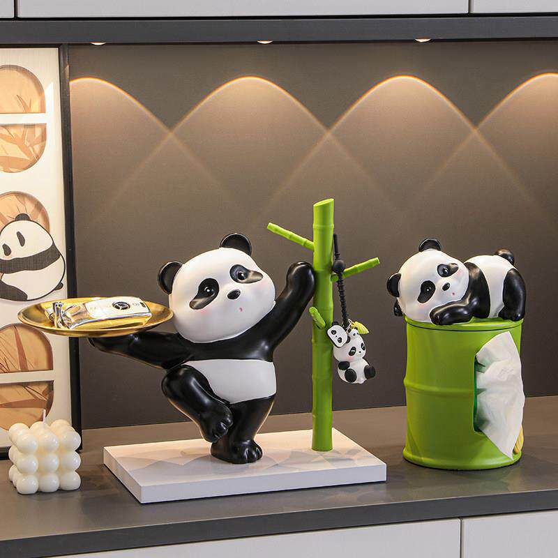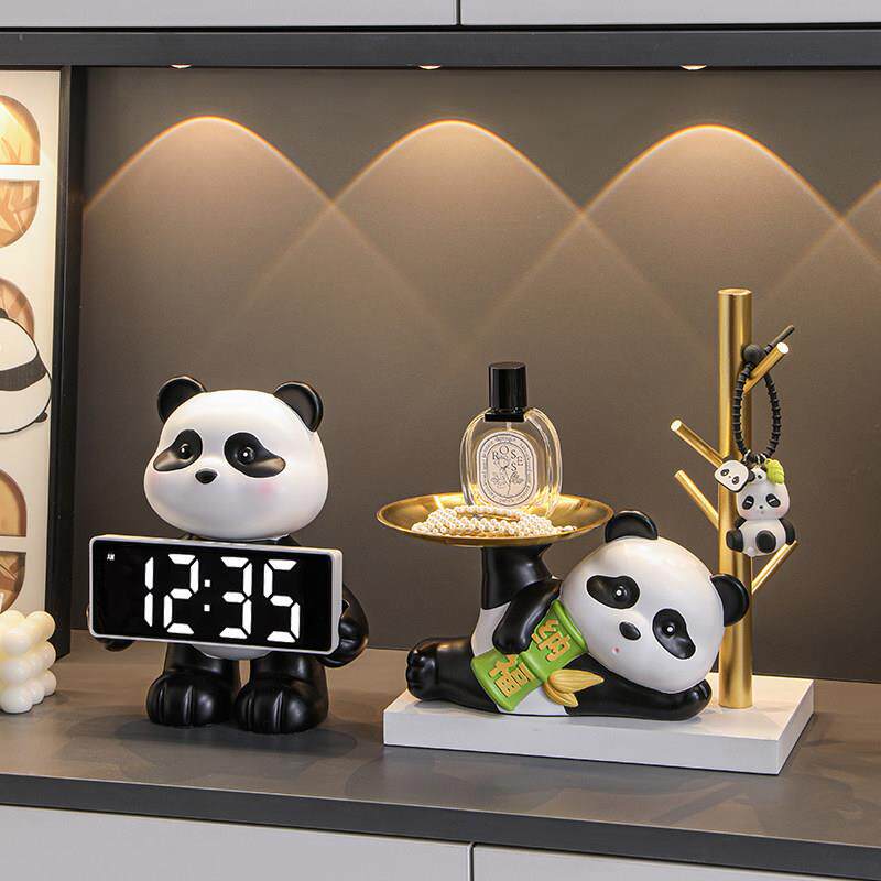 熊猫入户玄关钥匙收纳摆件家居装饰品进门口鞋柜客厅乔迁新居礼品
