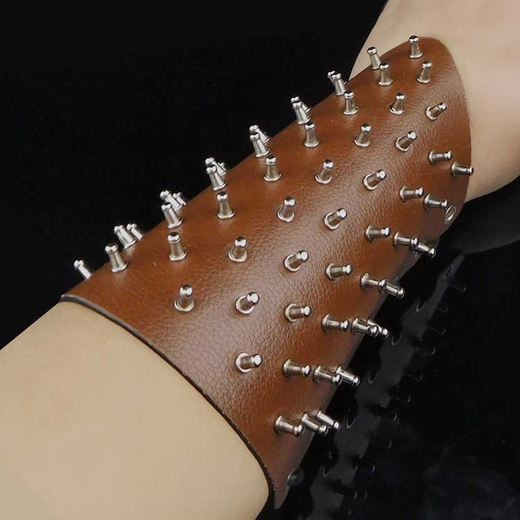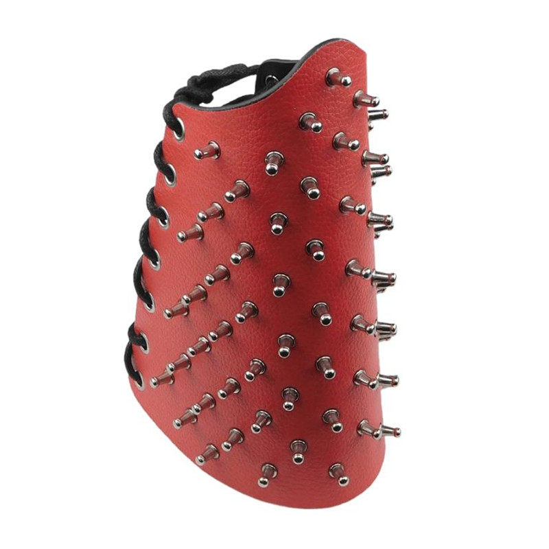 奶嘴铆钉大红色荔枝纹时尚赛博朋克手链装饰品皮手镯系绳子大手带
