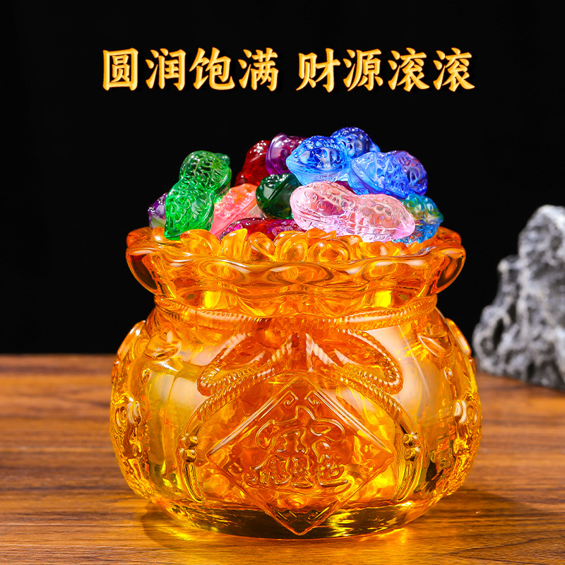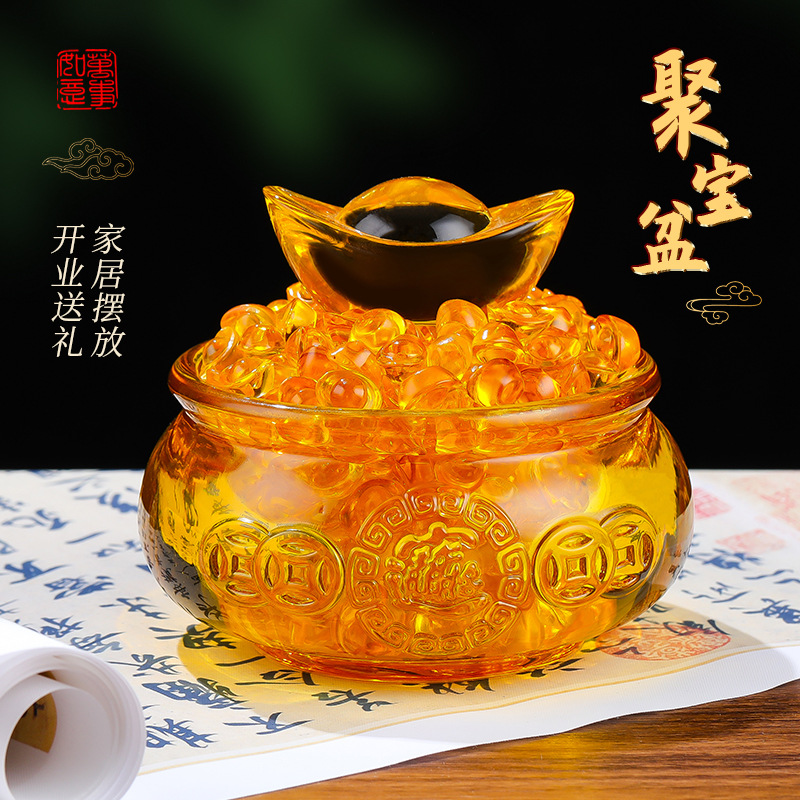 金色水晶聚宝盆福袋春节小礼物年货居家装饰布置氛围摆件