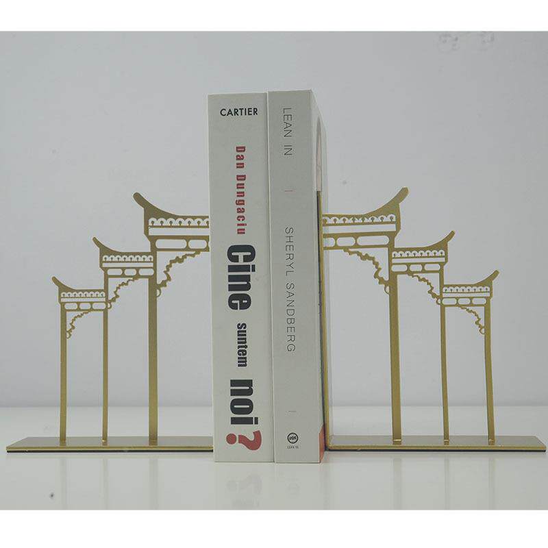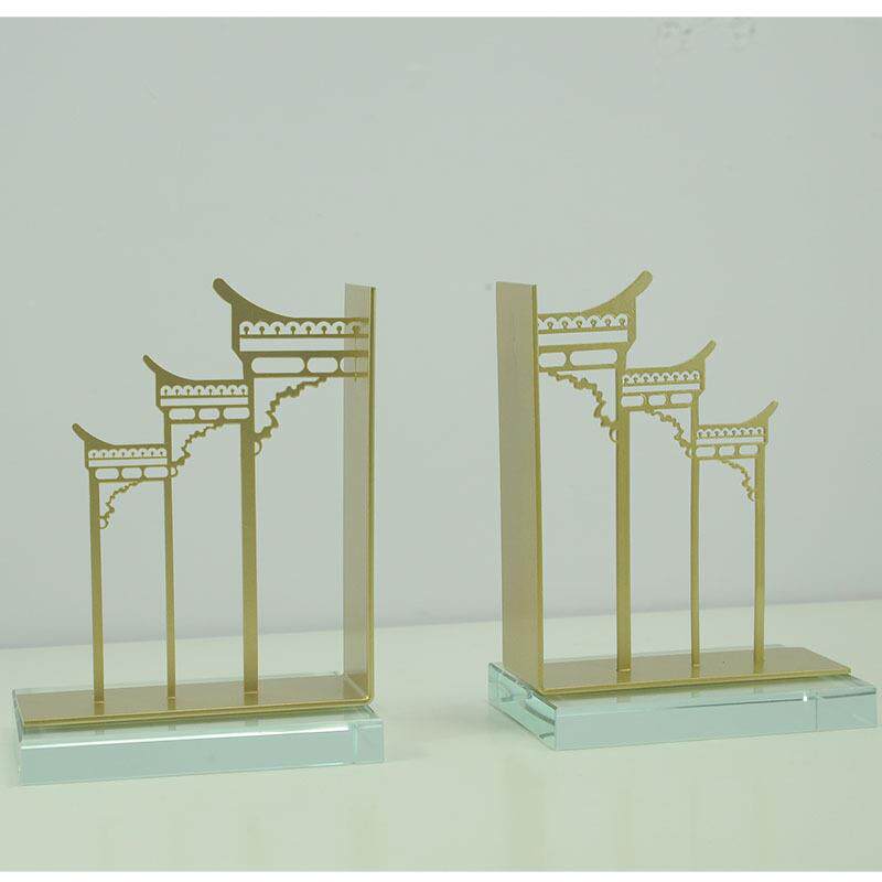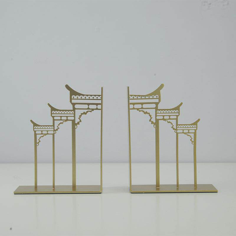 新中式金属牌坊书靠书档现代简约家居书房办公室软装饰品摆件定制