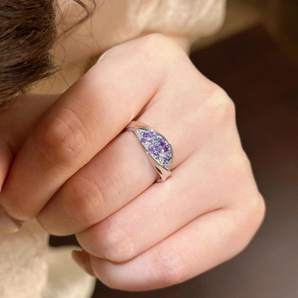紫色情结戒指精致锆石饰品小众百搭轻奢高级感手饰气质日常通勤