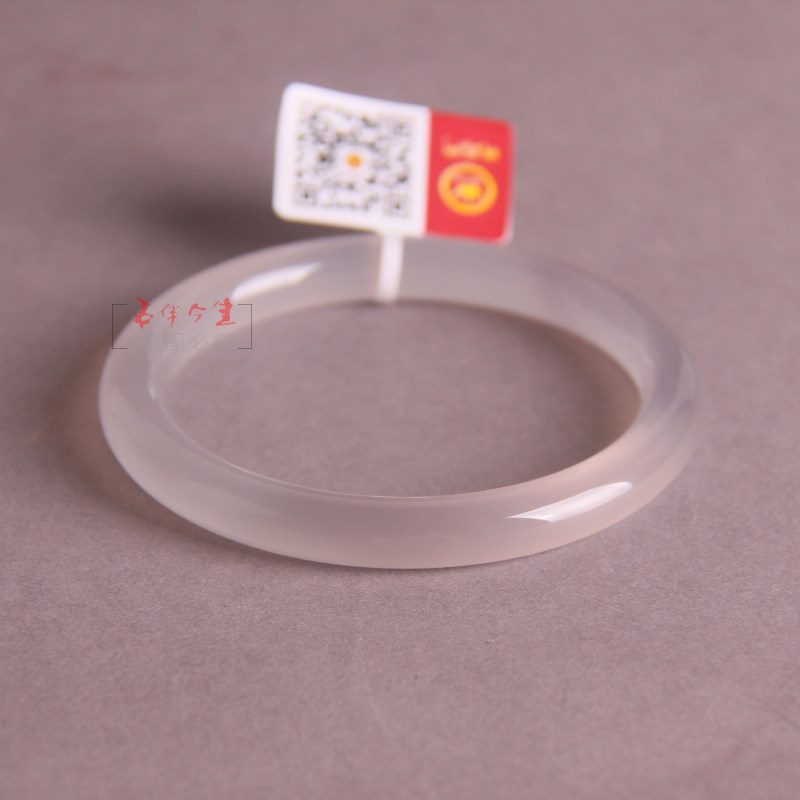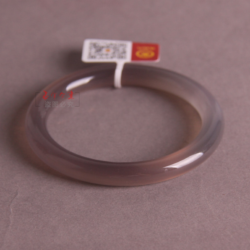 纯天然巴西灰玉髓圆条玛瑙手镯 极度通透 精致 圆条女镯子