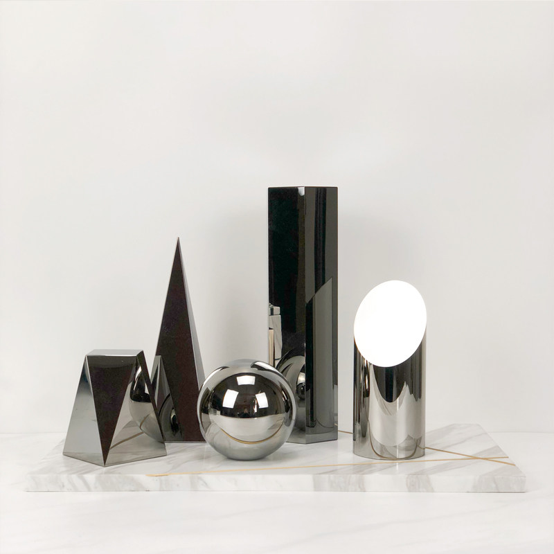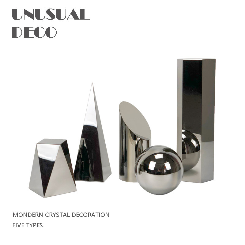 极速现代简约轻奢烟灰色水晶几何体摆件样板房售楼处软装饰品桌面