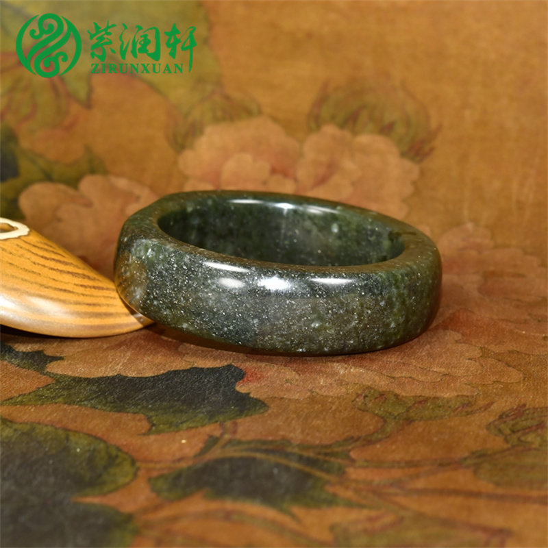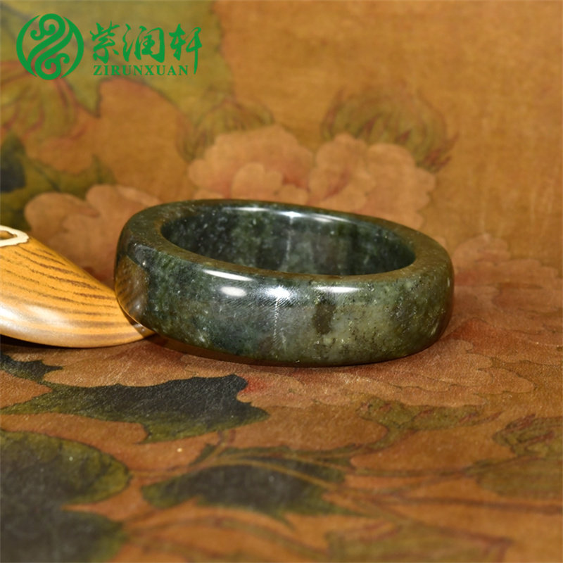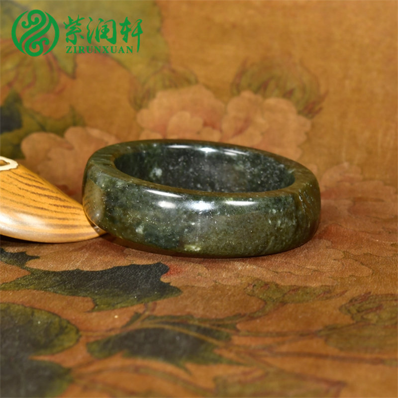 紫润轩新疆和田玉籽料手镯青玉青花宽版58 8MM哑光福利限会员拍